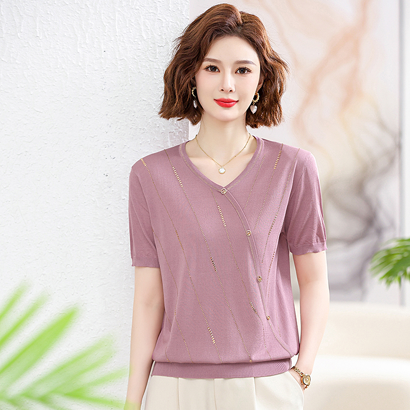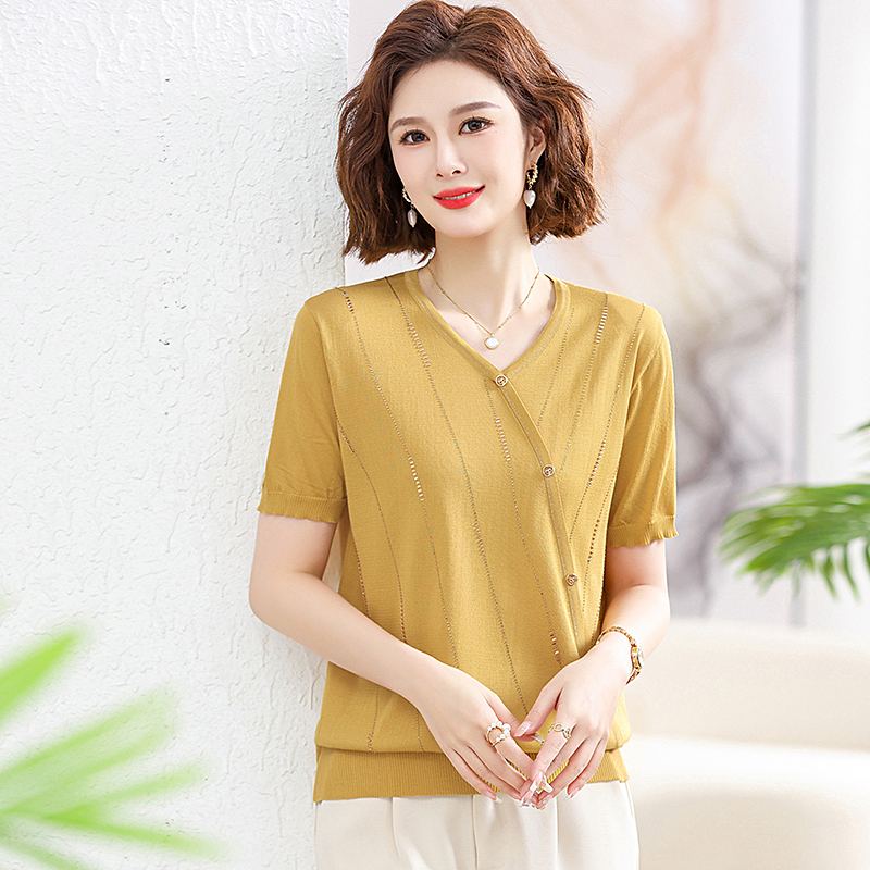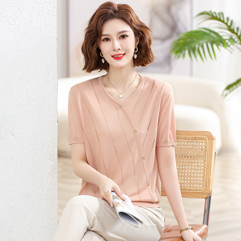Mother's Day Gift Mother's Summer Clothes suit Western Style New 2024 Short-sleeved T-shirt for Middle-aged and Elderly Women's plus size Top