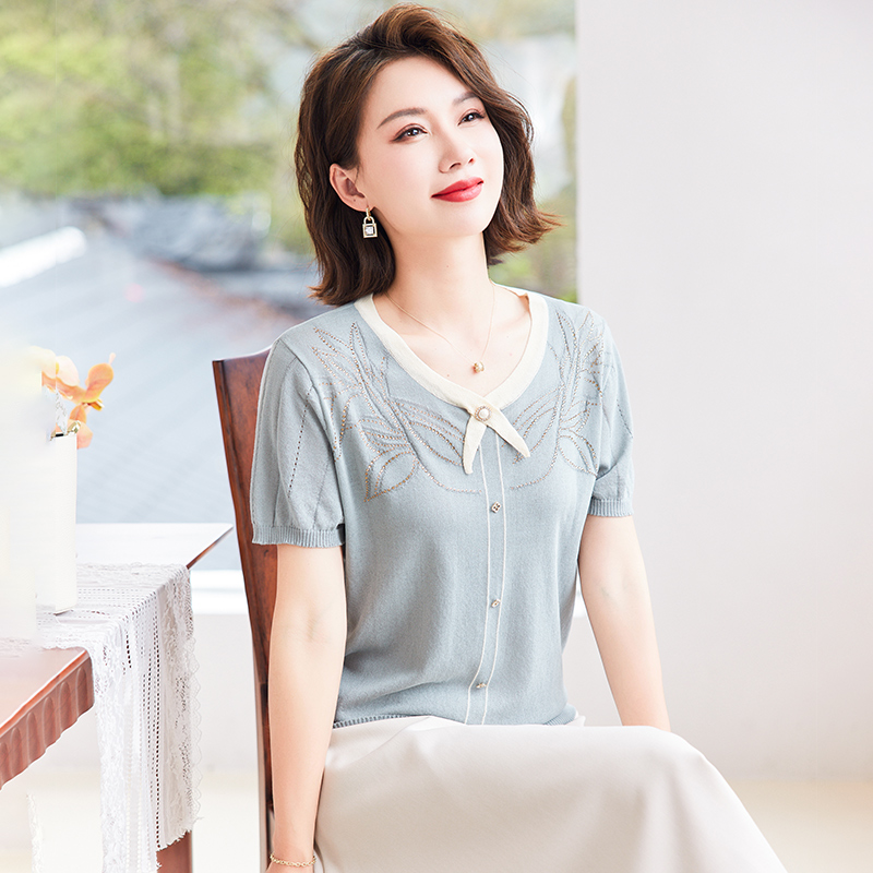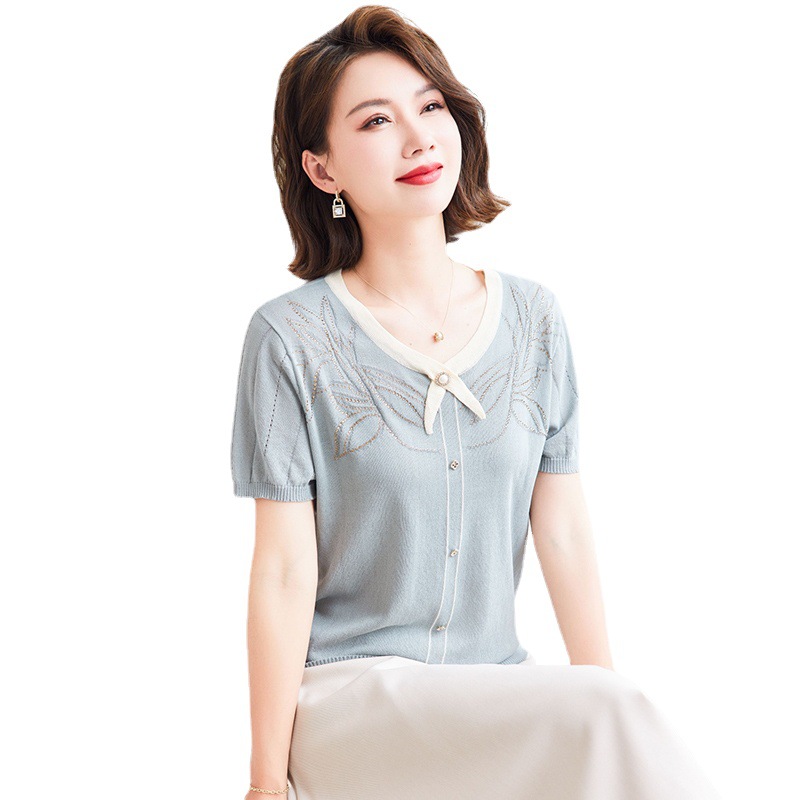 | nameOriginal | Mother's Day Middle-aged Mother's Summer Short-sleeved Shirt Women's Summer Thin Western-style Sweater |
