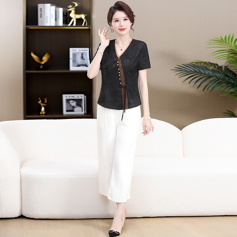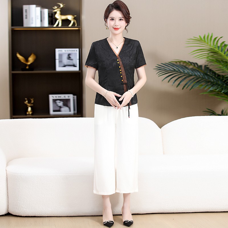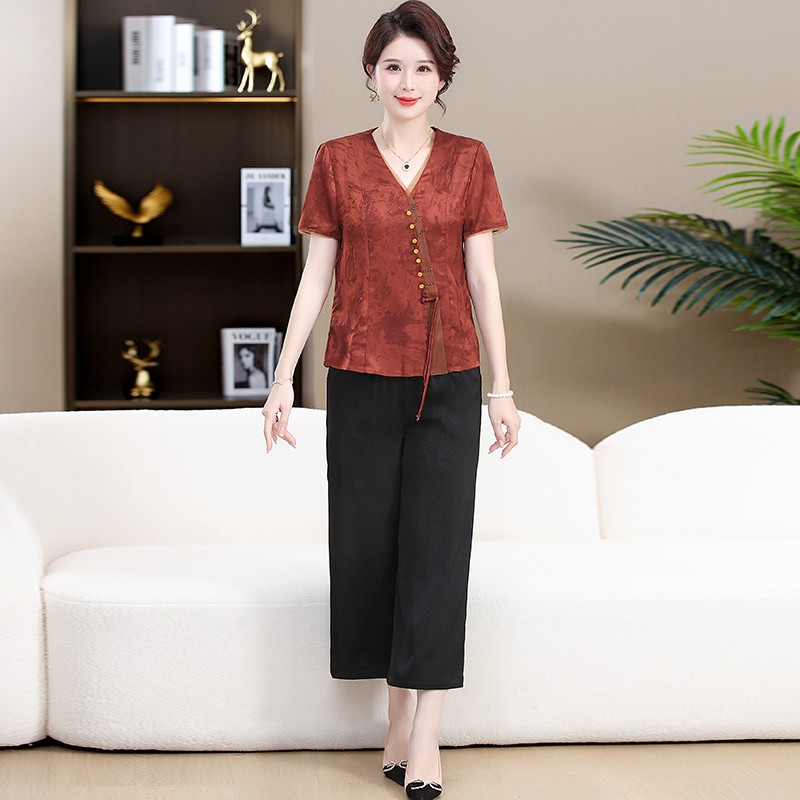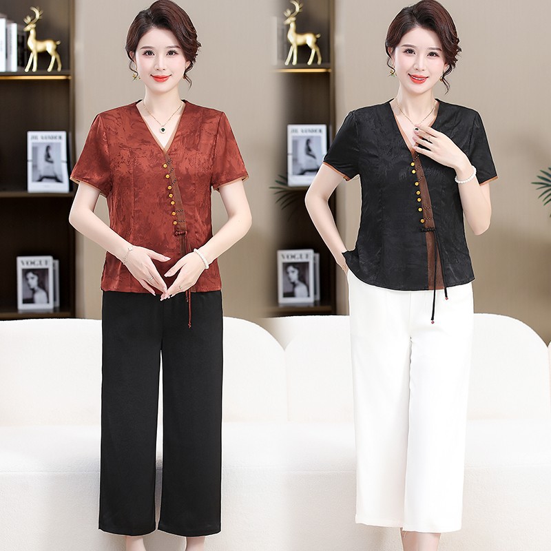 | nameOriginal | Mother's Ethnic Style Retro Shirt Pants Two-Piece Set Women's 2024 Summer New Temperament Age-Reducing suit |