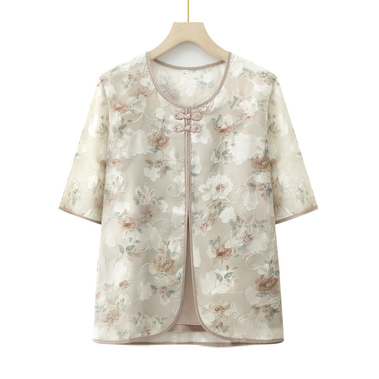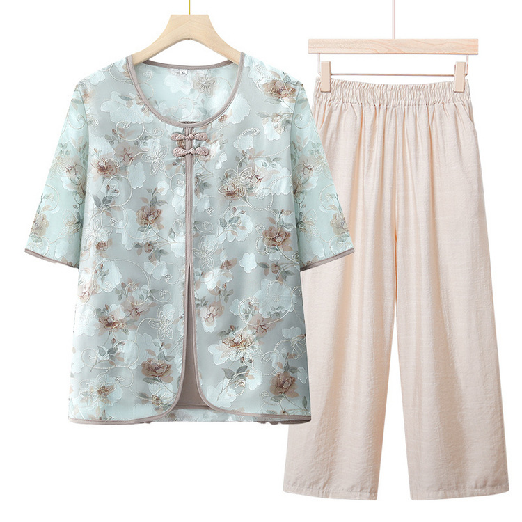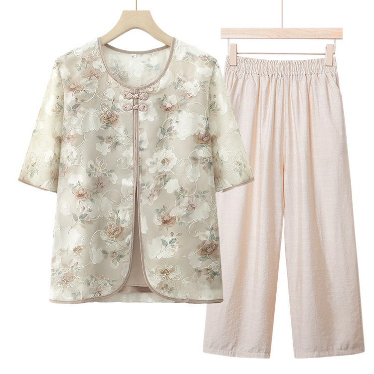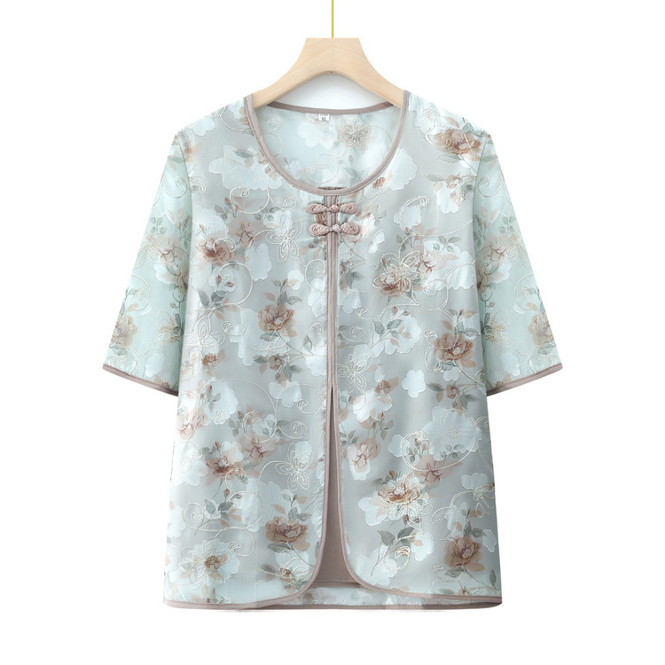 | nameOriginal | Mother's Fake Two-piece Small Shirt for Middle-aged and Elderly Western Style Grandma's Summer Short-sleeved Top Loose T-shirt Two-piece Set |