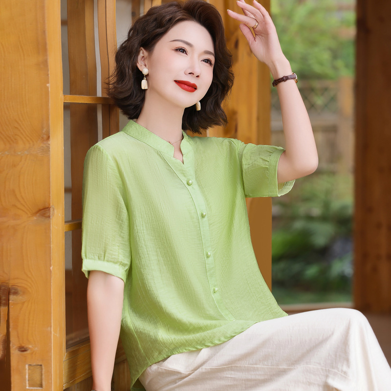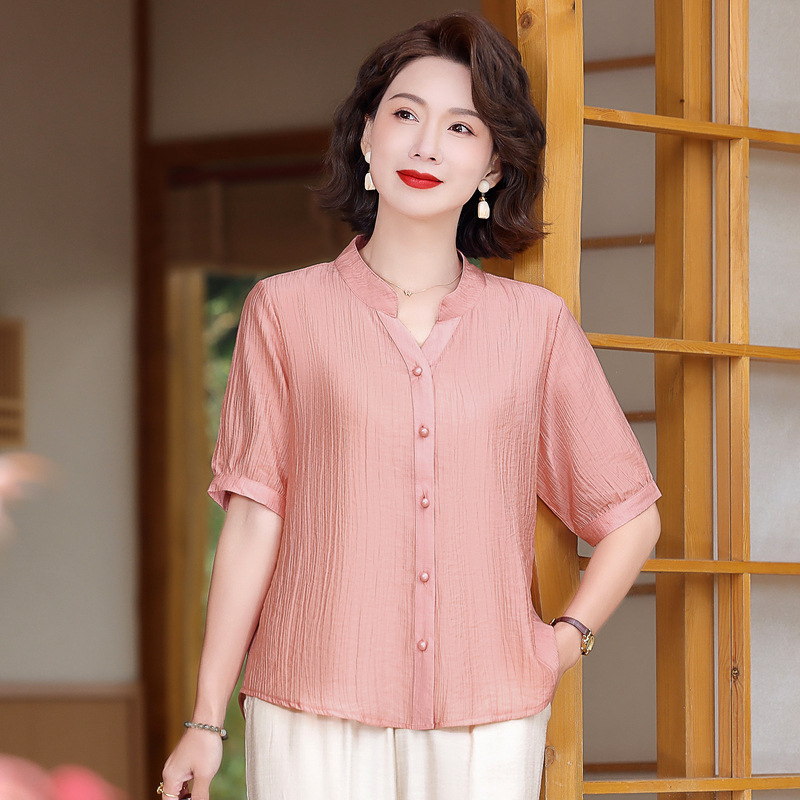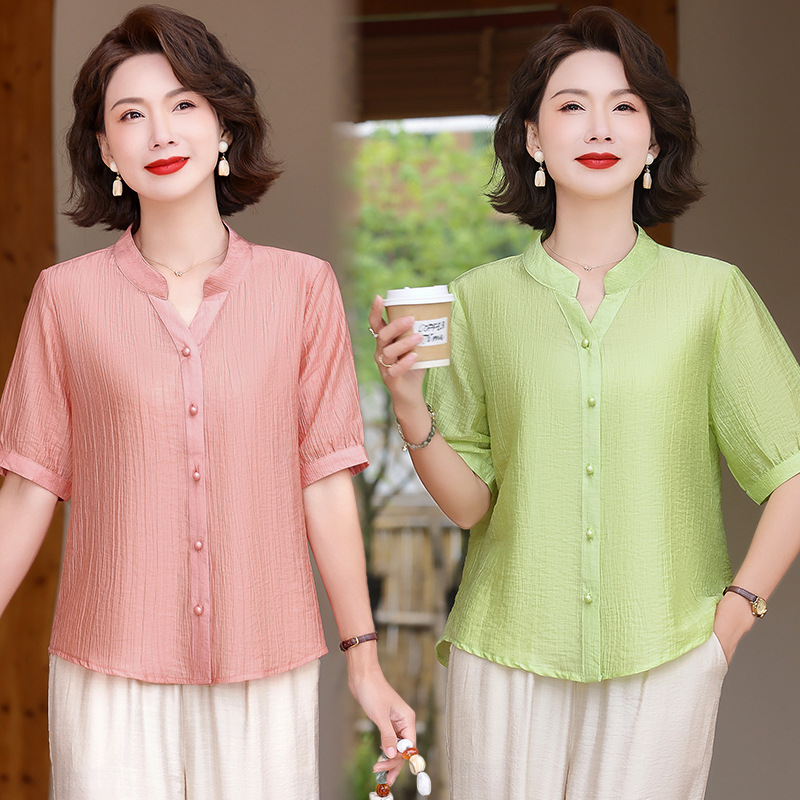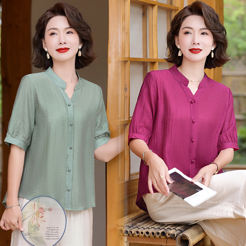 | nameOriginal | Mother's Fashionable Short-sleeved Shirt 2024 Summer New Middle-aged Women's plus size Cotton Linen Loose Belly Covering Top |