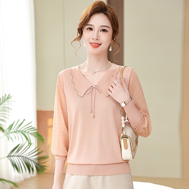 | nameOriginal | Mother's Knitted Lar Top Small Shirt 2024 Spring Thin Loose Solid Color Knitted Shirt Western-style Pullover Summer Dress |
