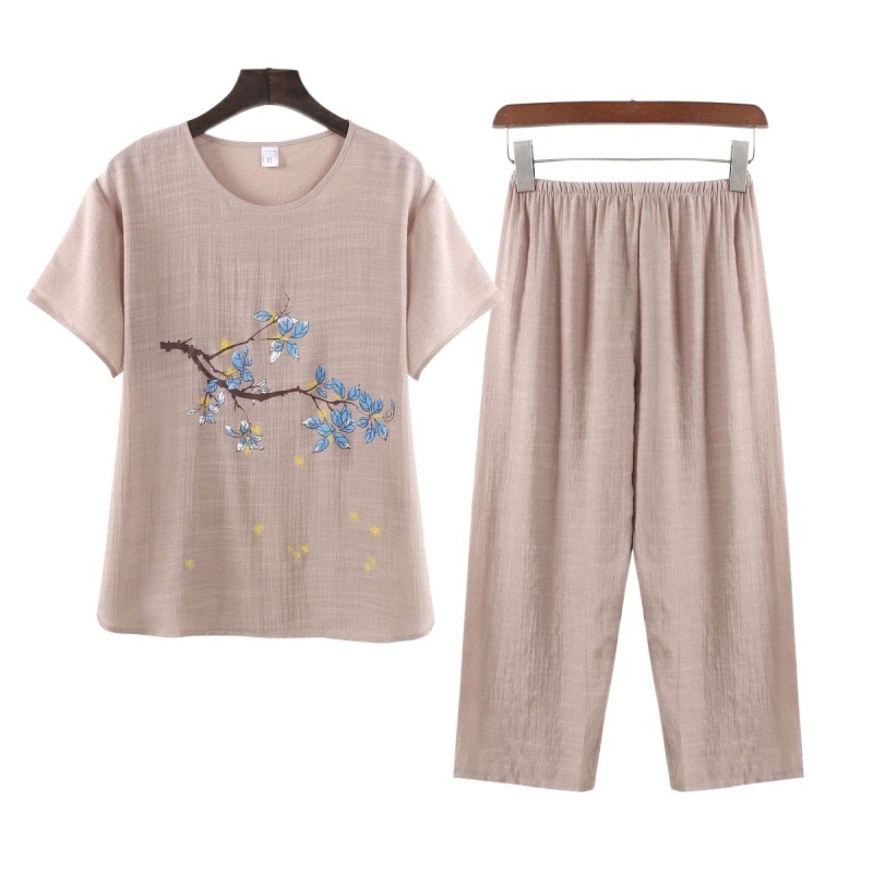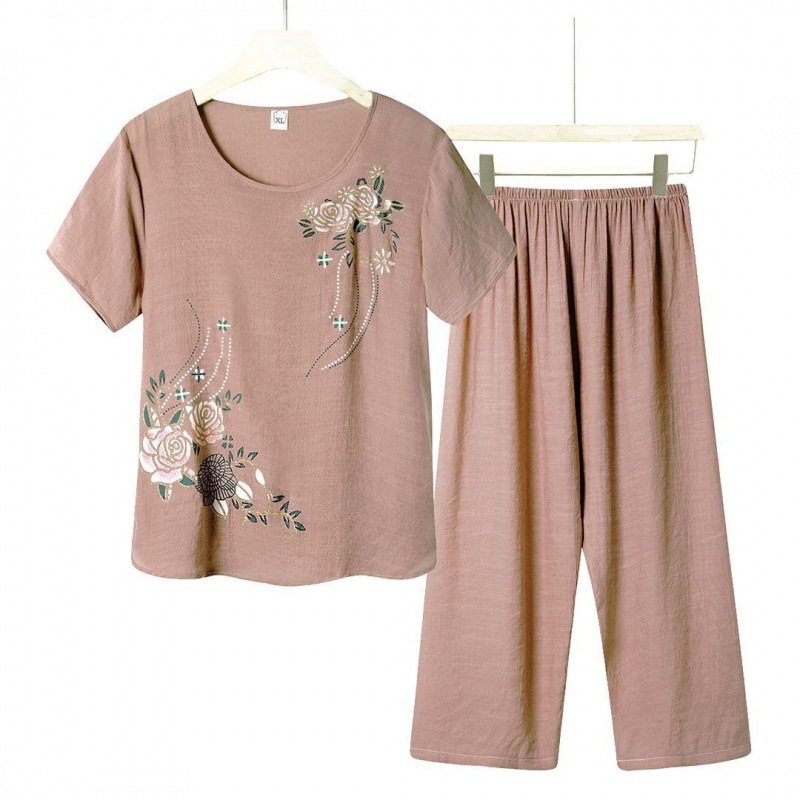 | nameOriginal | Mother's Middle-aged Summer Cotton Linen Short-sleeved Two-piece Loose Simple Breathable Top Pants Outer Wear Home Clothes |