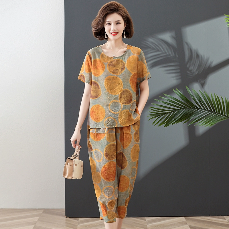 Mother's short-sleeved top pure cotton middle-aged and elderly loose summer clothes