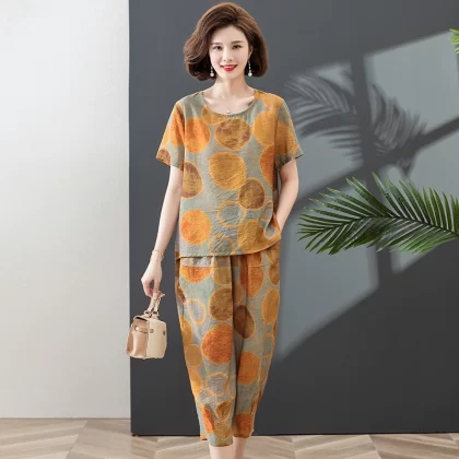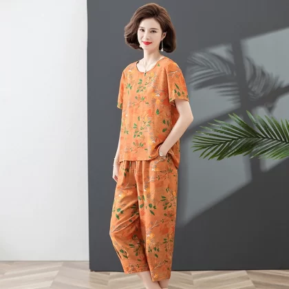 Mother’s short-sleeved top pure cotton middle-aged and elderly loose summer clothes