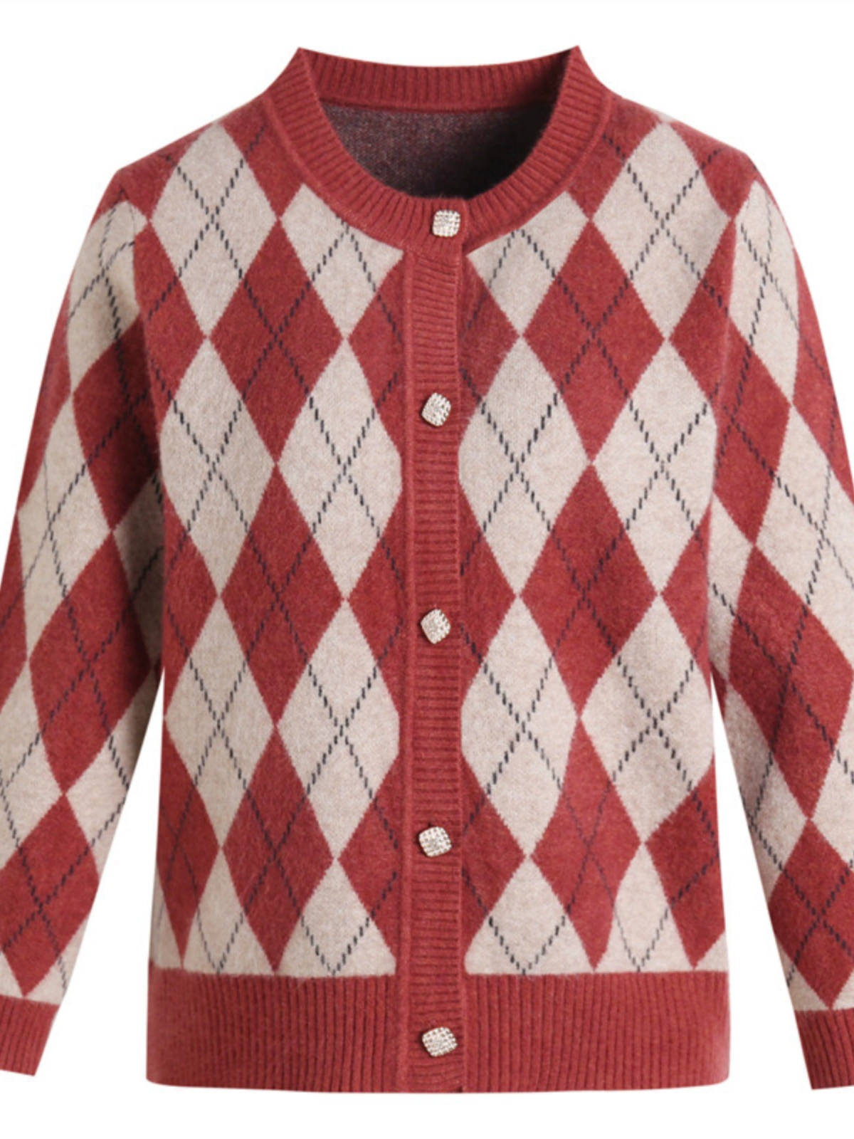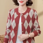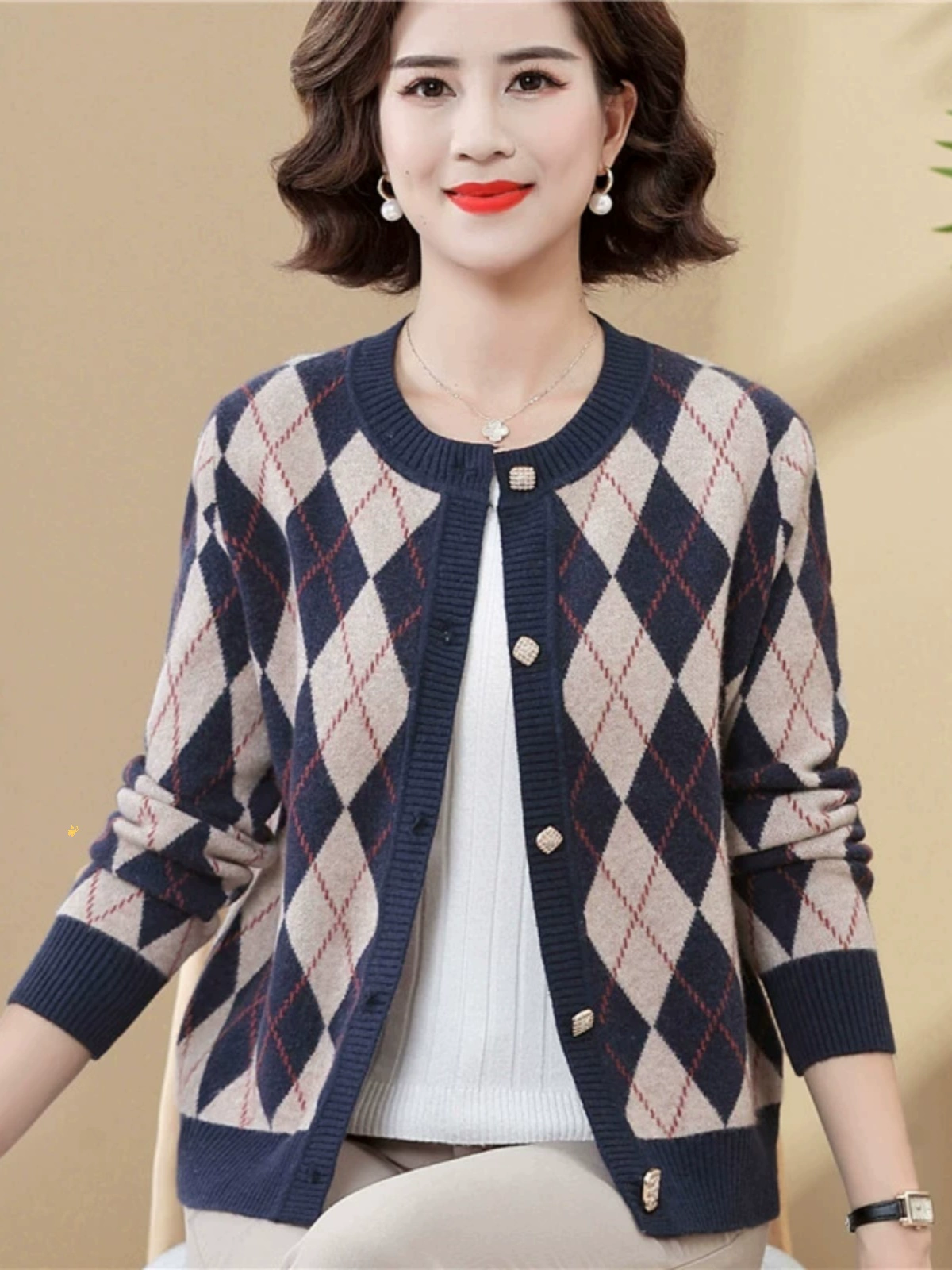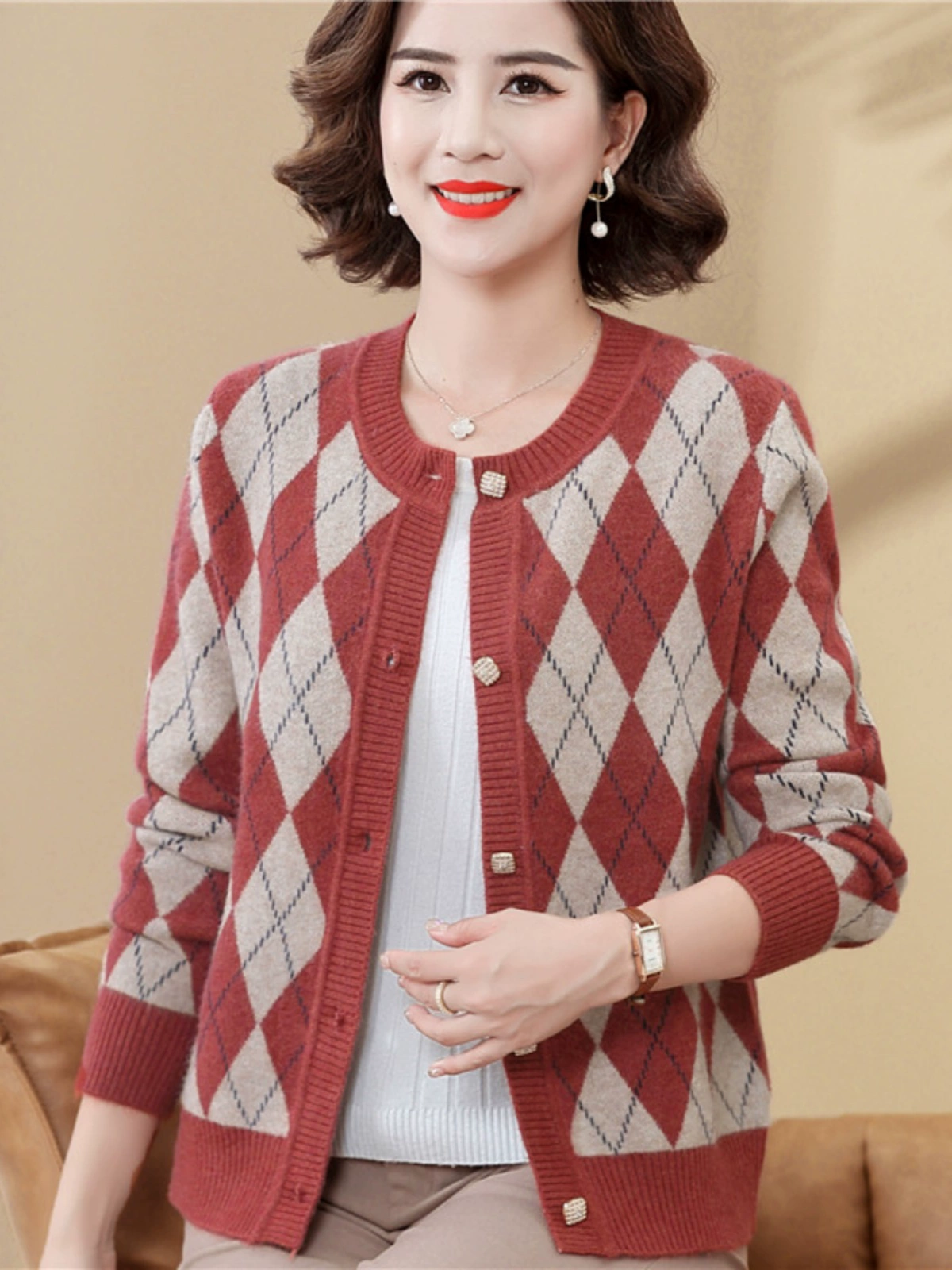 Mother’s spring and autumn fashion, thin plaid jacket, middle-aged women’s short jacket, middle-aged and elderly knitted cardigan