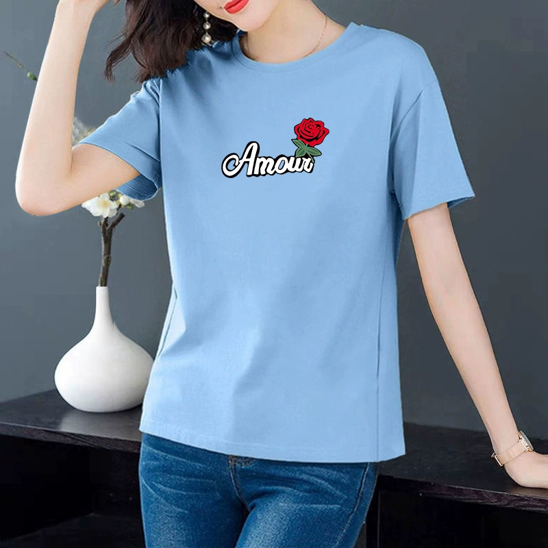 | nameOriginal | Mother's spring and summer new tops plus size women's T-shirt short sleeve fat mm cover belly round neck slim and loose summer |