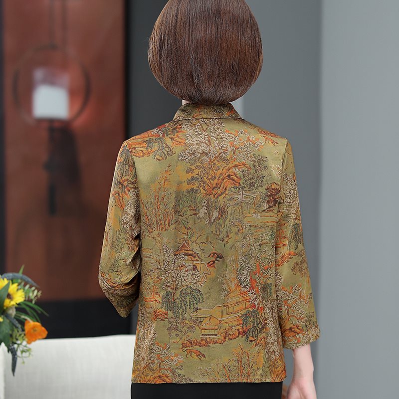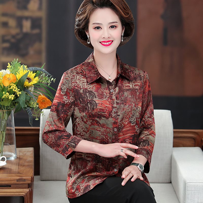 | nameOriginal | Mother's Spring and Summer Seven-Sleeve Lapel Shirt Summer Clothes Silk-like Shirt Middle-aged and Elderly Middle-Sleeve Western Style Upper Clothes Temperament |