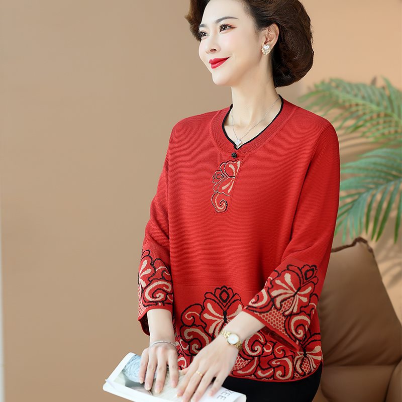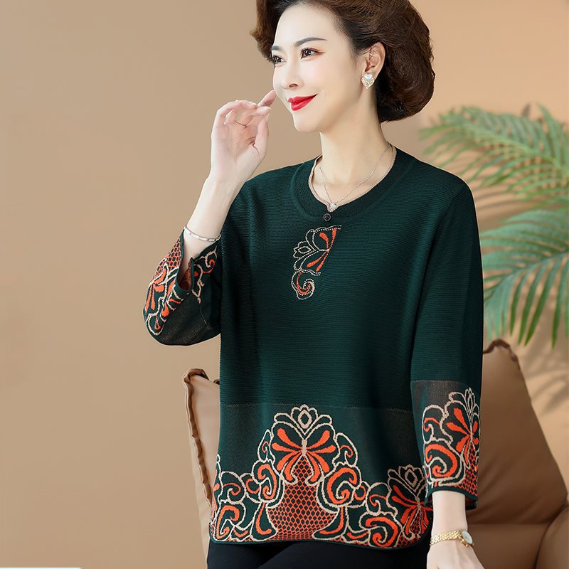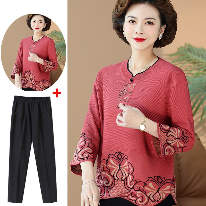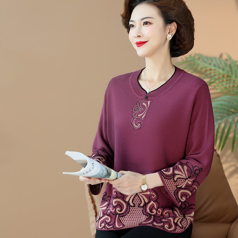 | nameOriginal | Mother's Spring New Style Western Style Top Middle Sleeve Ice Silk Shirt Middle-aged and Elderly Women's Spring and Autumn Base plus size suit |
