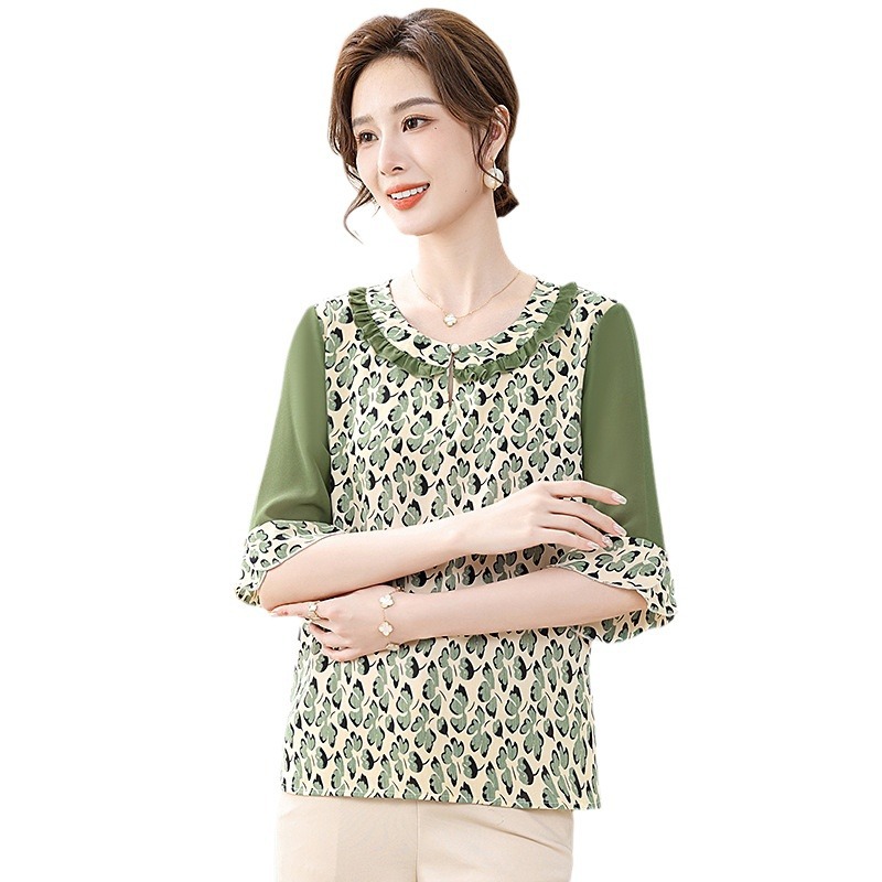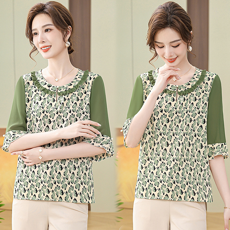 Mother’s Stylish Age-reducing Chiffon Top Clothes Middle-aged Women’s Summer Clothes Floral T-shirt Middle-aged Temperament Shirt Middle-aged Sleeve