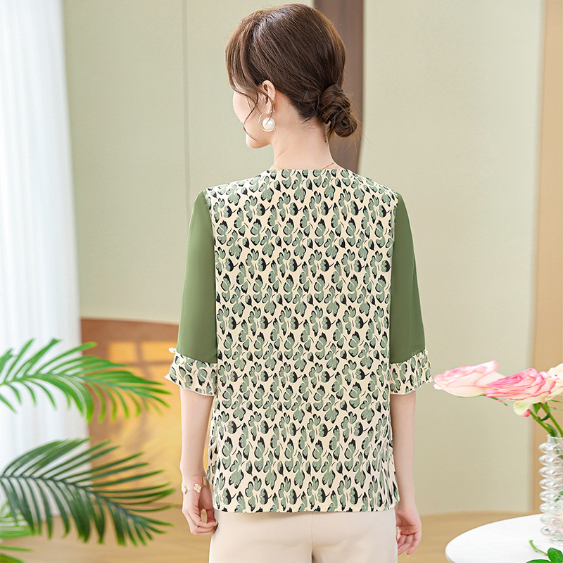 Mother's Stylish Age-reducing Chiffon Top Clothes Middle-aged Women's Summer Clothes Floral T-shirt Middle-aged Temperament Shirt Middle-aged Sleeve