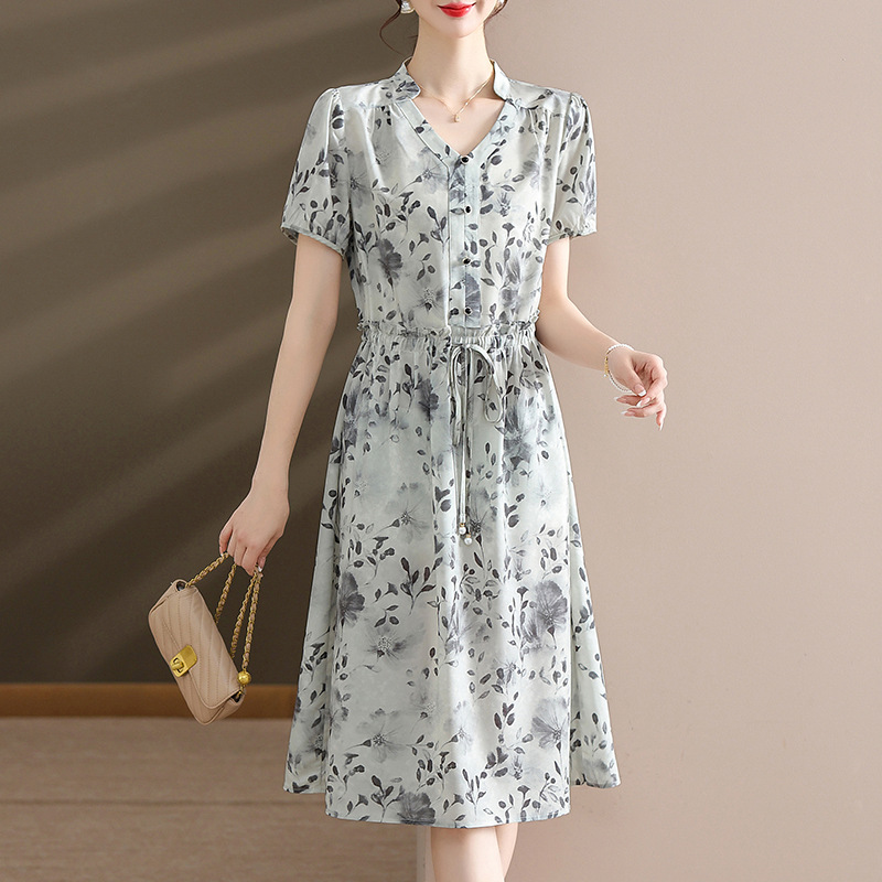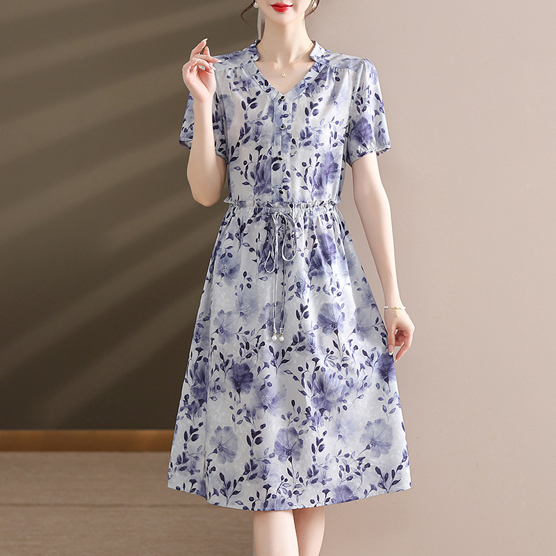 | nameOriginal | Mother's Summer 2024 New Style Temperament Middle-aged and Elderly Summer Chiffon dress Women's Belly Covering Slimming Short-sleeved Skirt |