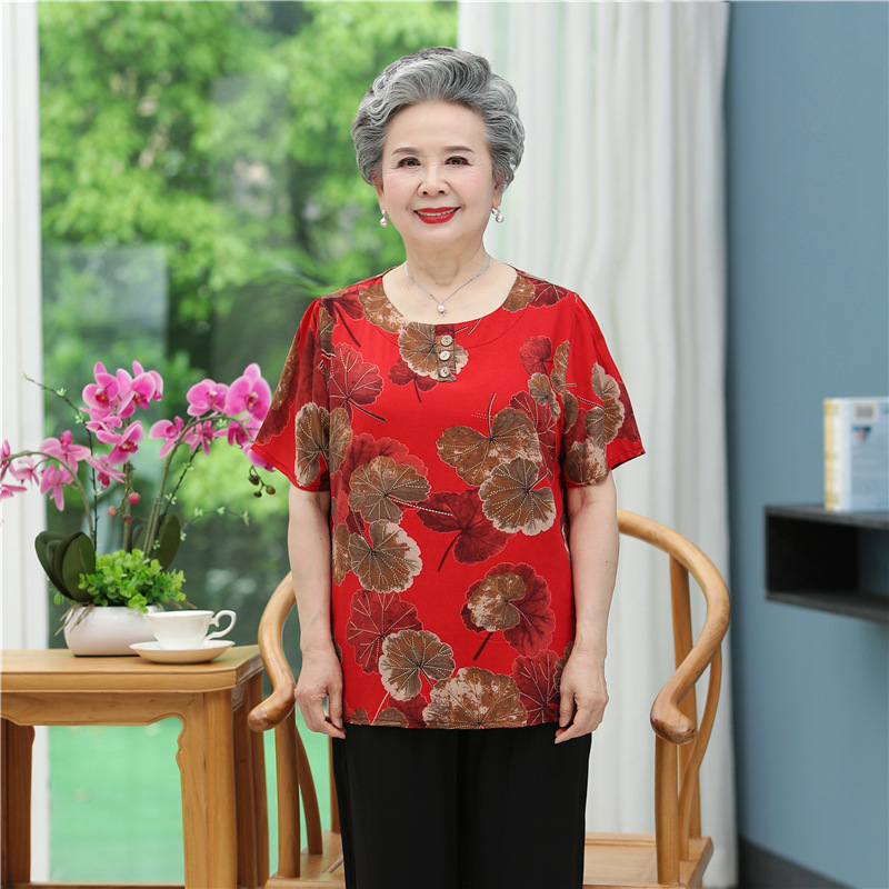 | nameOriginal | Mother's Summer Cotton Short-sleeved T-shirt Middle-aged and Elderly Women's Pullover T-shirt Top Grandma's Artificial Cotton Outer Wear |