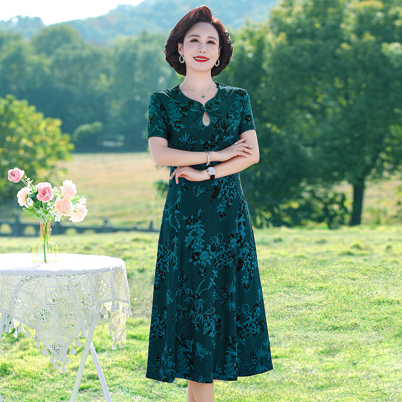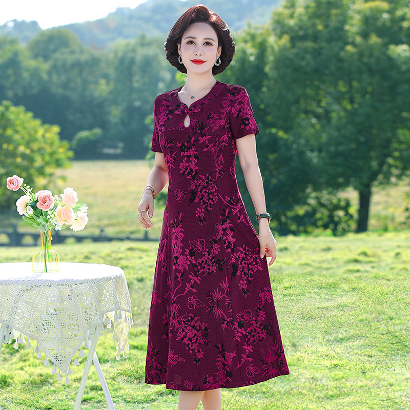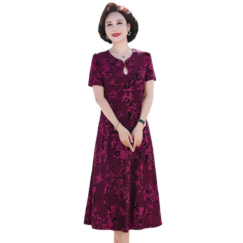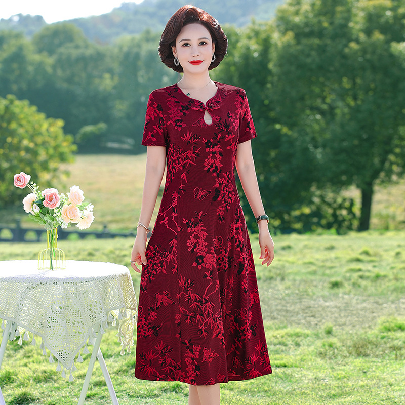Mother's Summer Dress dress Middle-aged and Elderly Women's Dress Your Lady's Elegant Cheongsam 40-year-old 50 Wedding Dress Short-sleeved Dress