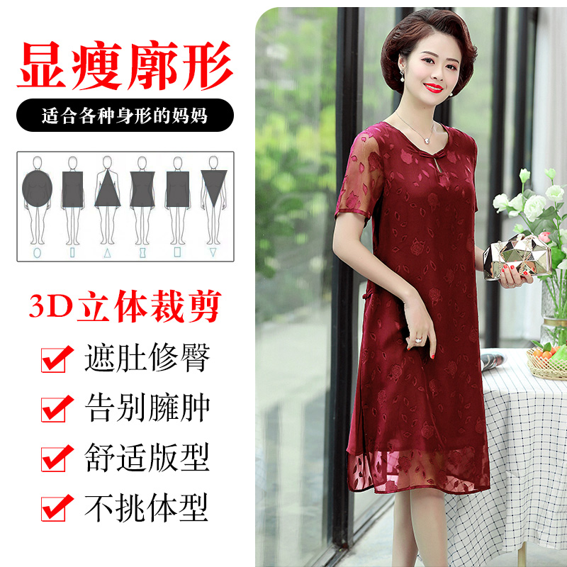 | nameOriginal | Mother's summer dress dress over the knee 2024 new middle-aged women's 40-year-old 50-year-old middle-aged rich wife western style skirt |