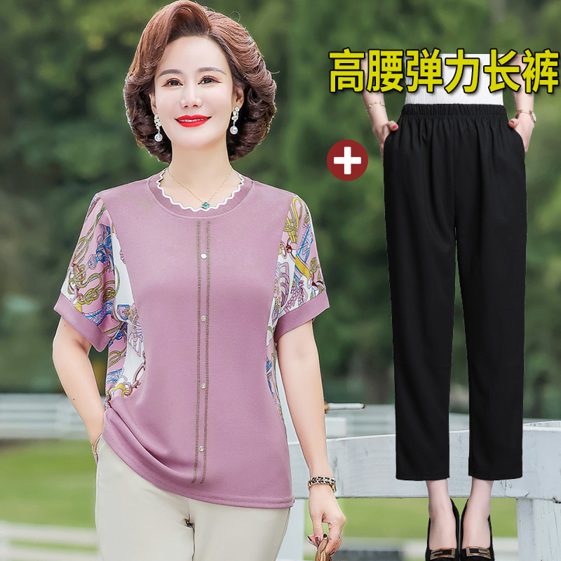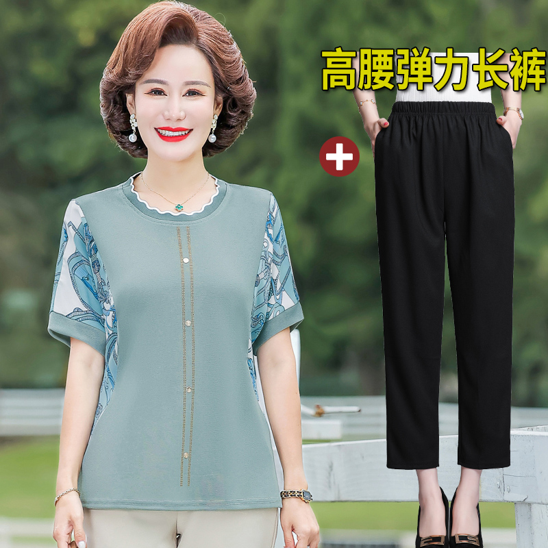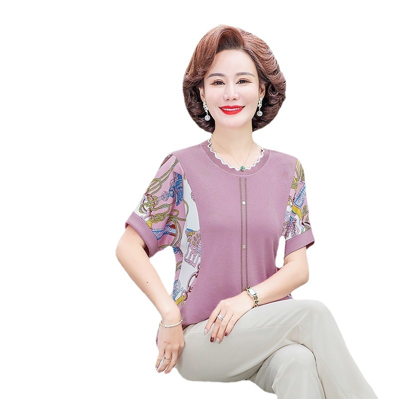 | nameOriginal | Mother's Summer Dress Ice Silk Short-sleeved T-shirt Small Shirt 2024 New Arrival Middle-aged Women's Stylish Fashion Top Middle-aged and Elderly Sweatshirt |