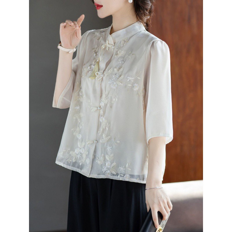 Mother's Summer Dress suit Fashion Western Style 2024 New Middle-aged and Elderly Women's Summer Chiffon Shirt 40-year-old Elegant Top