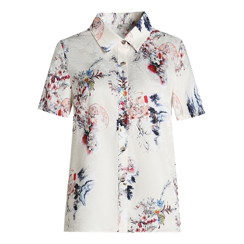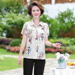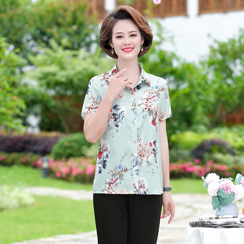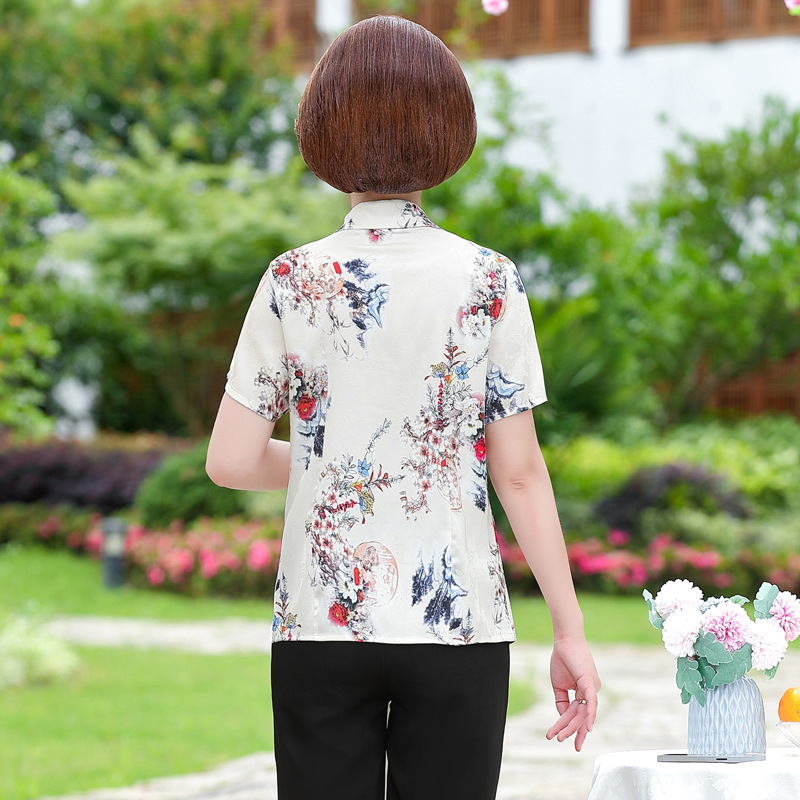 | nameOriginal | Mother's Summer Elegant Lapel Short-sleeved Floral Shirt Western Style T-shirt Middle-aged and Elderly Women's Imitation Silk Printed Shirt |
