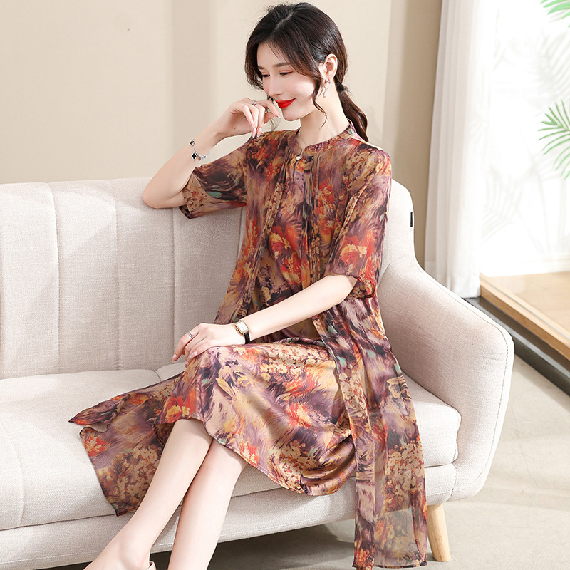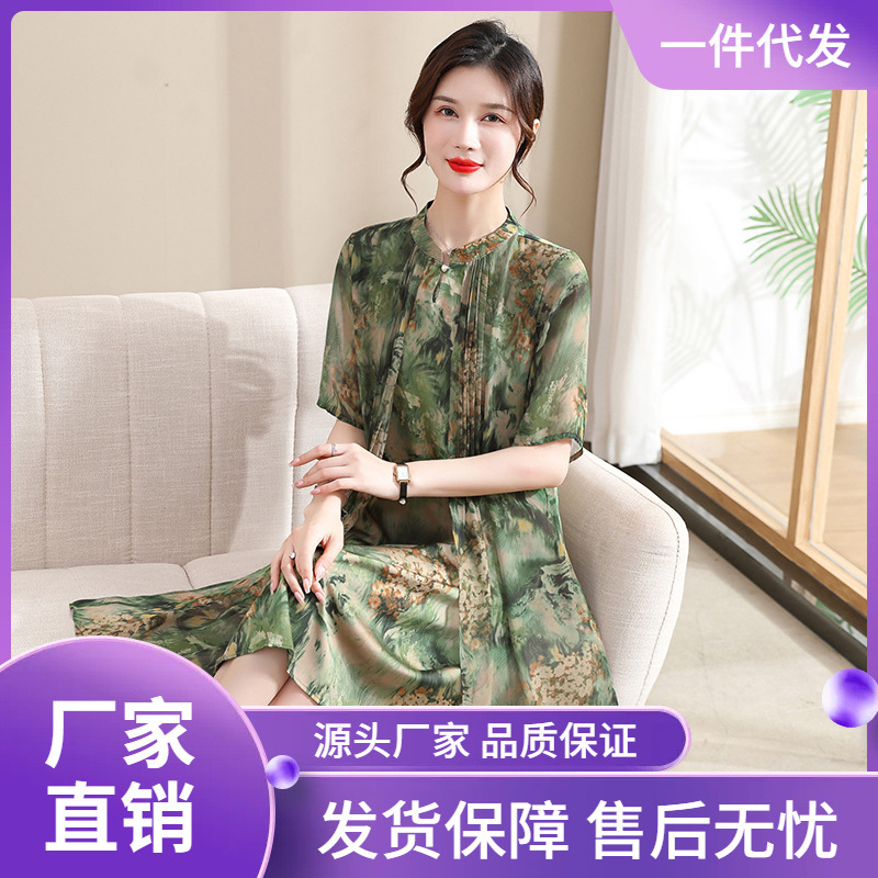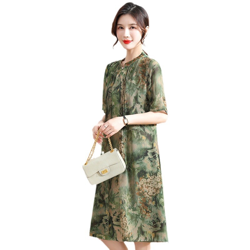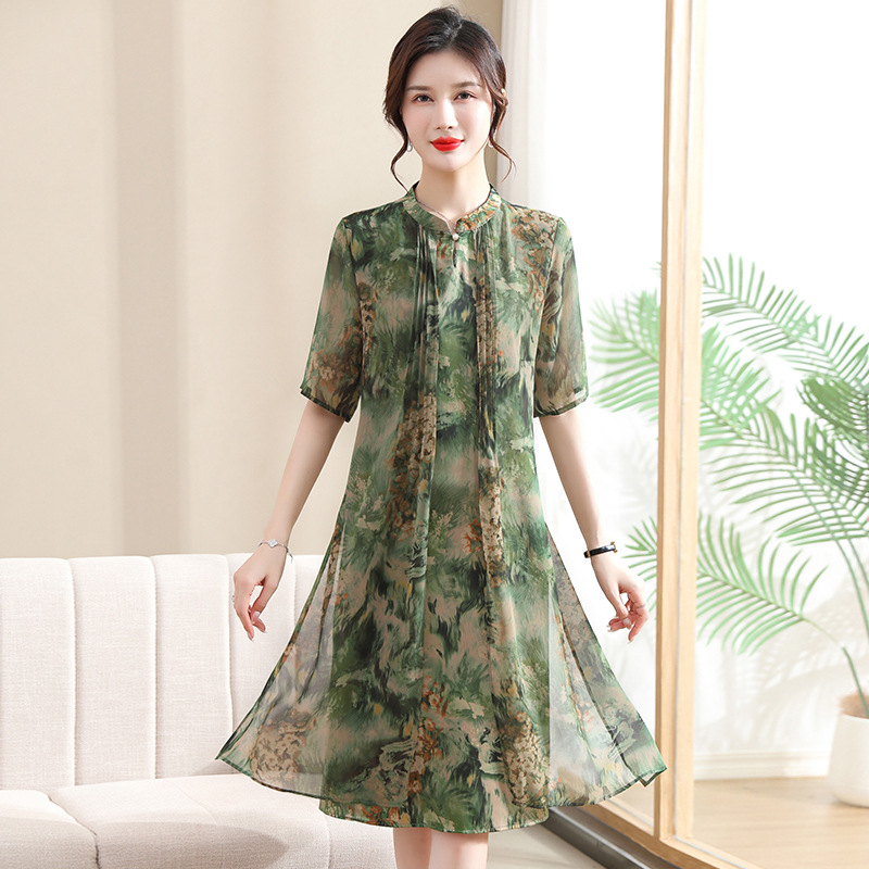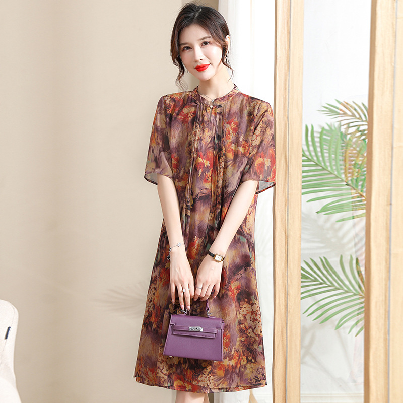 | nameOriginal | Mother's Summer Middle-aged Mother's Summer dress Short-sleeved Western Style Women's Mid-length Fake Two-piece Chiffon Dress Trendy |