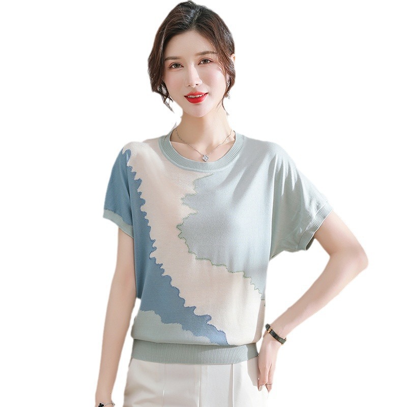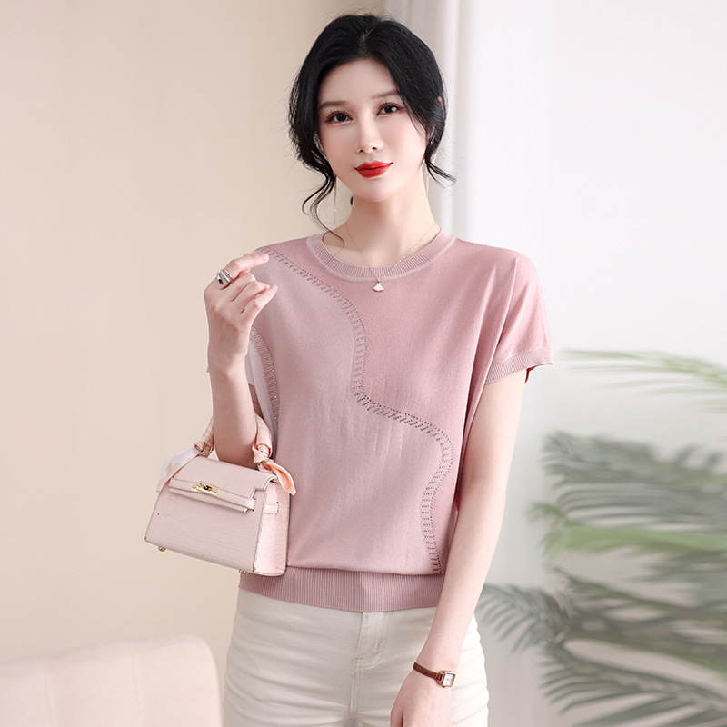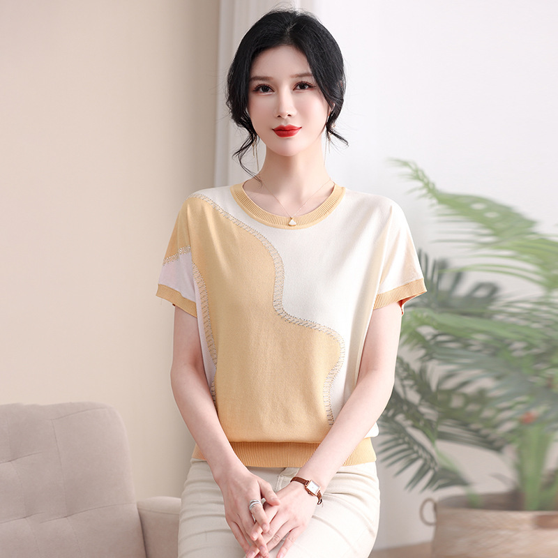 | nameOriginal | Mother's Summer New Style Knitted Western Style Short-sleeved T-shirt Middle-aged and Elderly Women's Elegant Round Neck Ice Silk Age-reducing Top |