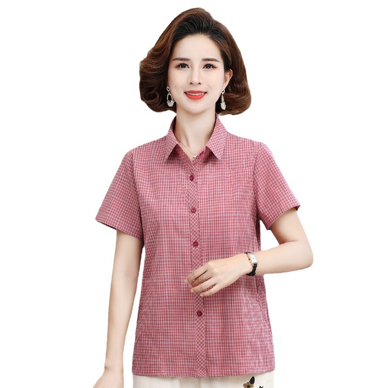 | nameOriginal | Mother's Summer Short-sleeved Cotton Plaid Shirt Summer Middle-aged Women's Top Middle-aged and Elderly Women's Cotton Shirt |