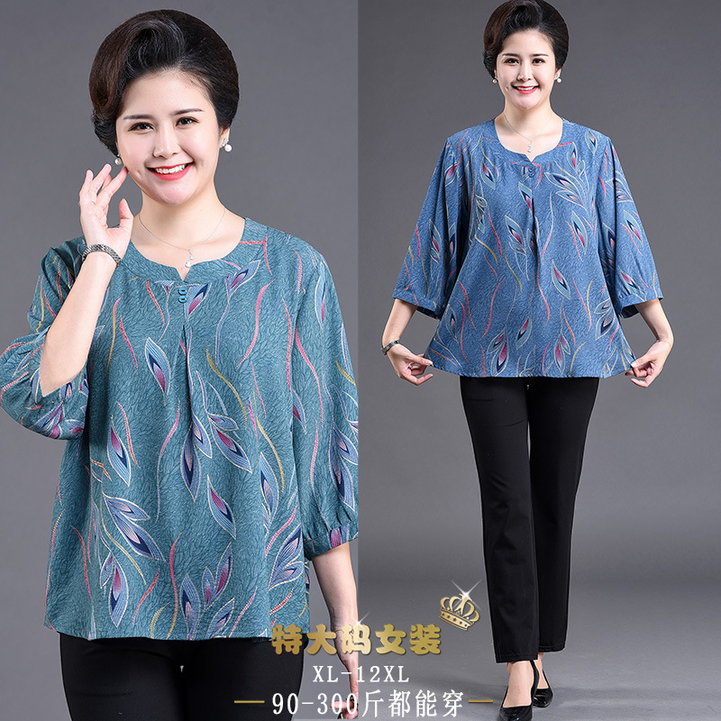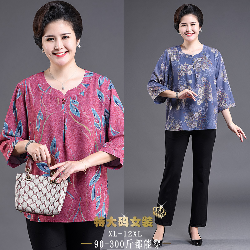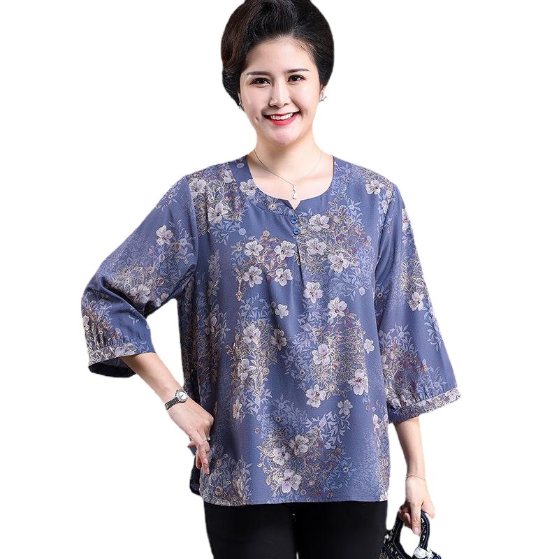 | nameOriginal | Mother's Summer Short-sleeved Mother's Summer Bubble Yarn Elegant Women's plus size Chiffon T-shirt Loose Middle-aged and Elderly Women's Special |