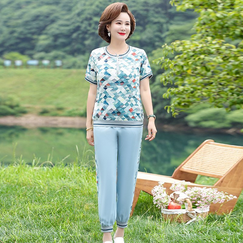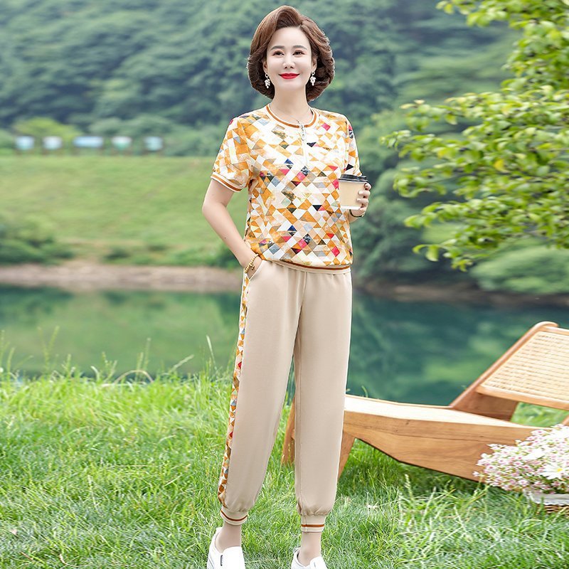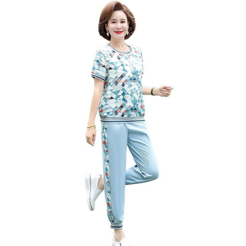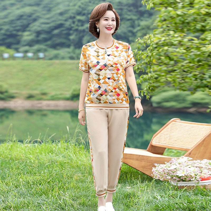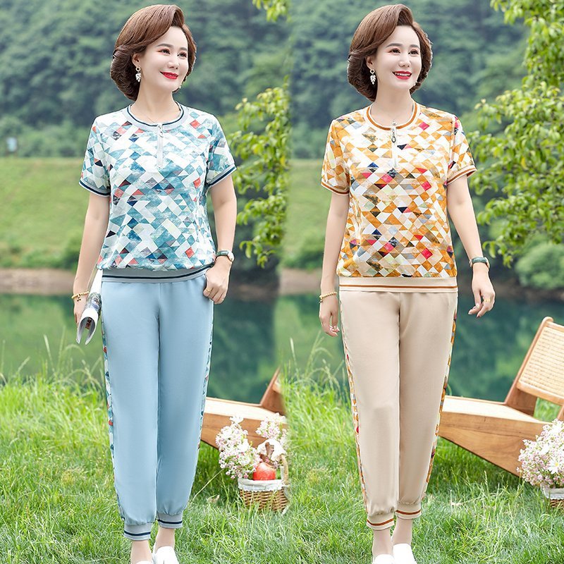 | nameOriginal | Mother's Summer Wear Sports suit 2024 New Middle-aged and Elderly Western Style Short Sleeve Women's Summer Two-piece Suit |