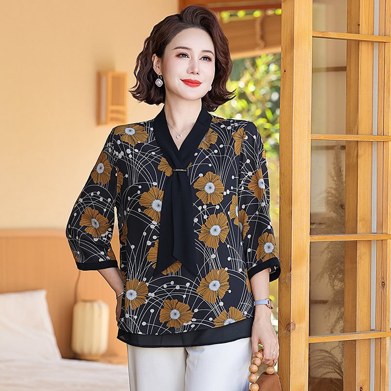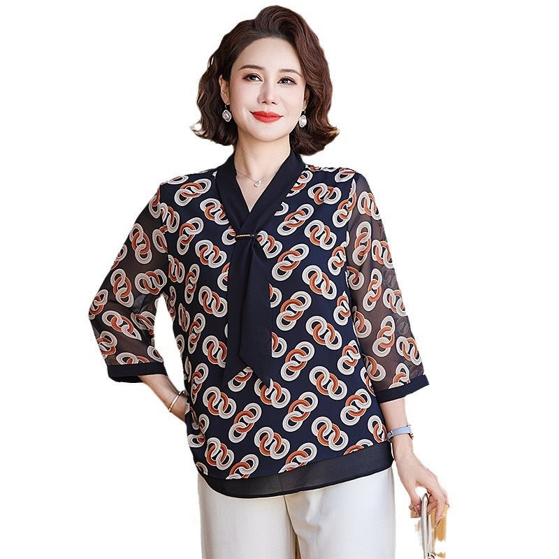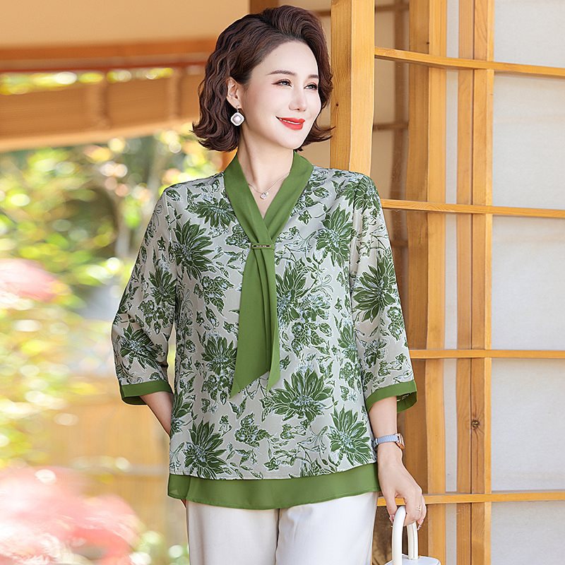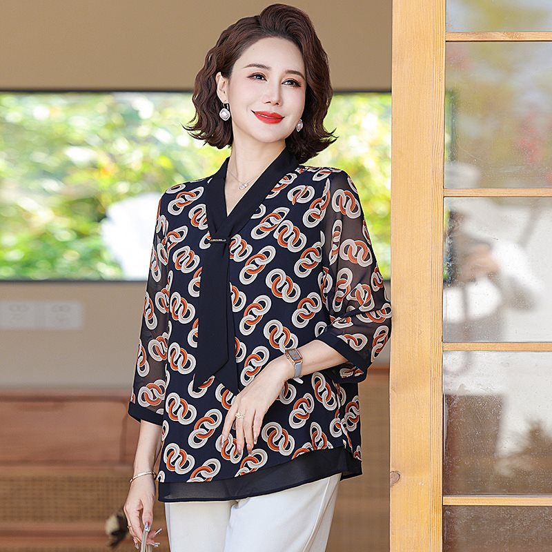 | nameOriginal | Mother's T-shirt Short-sleeved Summer New Noble Western Style Middle-aged and Elderly Women's Clothing Cool Breathable Chiffon Shirt |