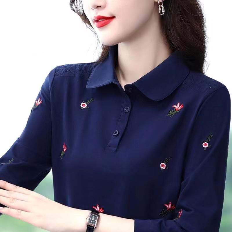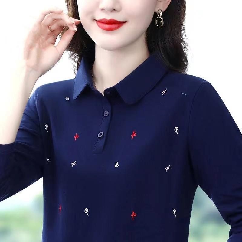 | nameOriginal | Mother's T-shirt Spring and Autumn New Women's Shirt All-match Lapel Polo Shirt Long Sleeve T-shirt Base Shirt |