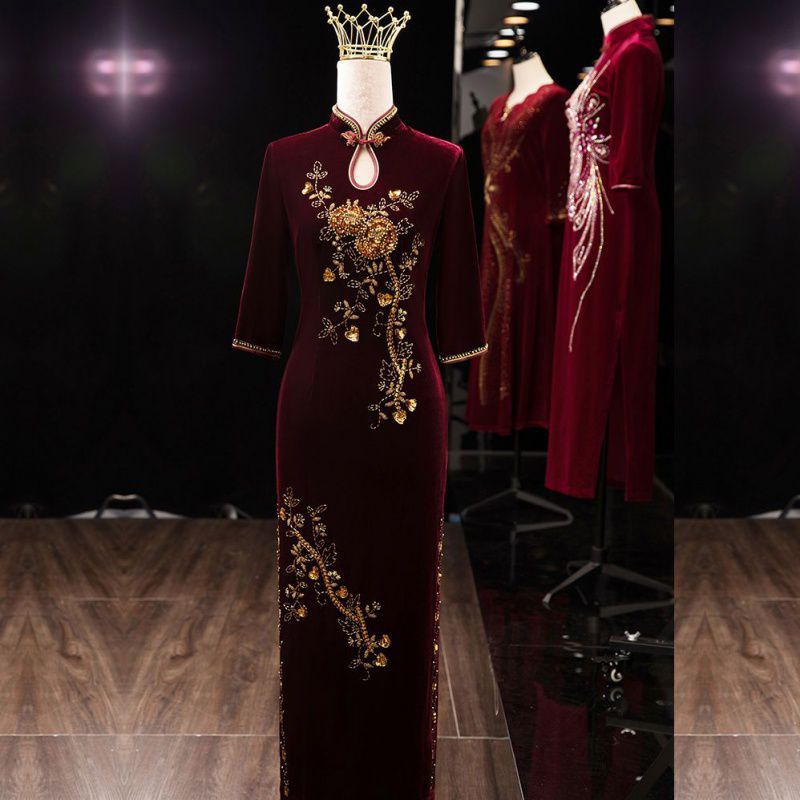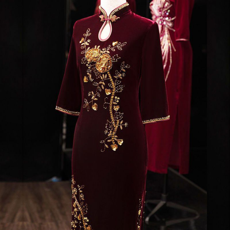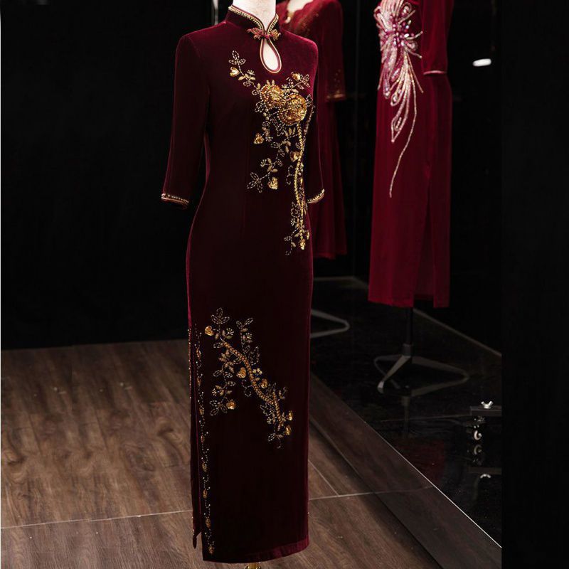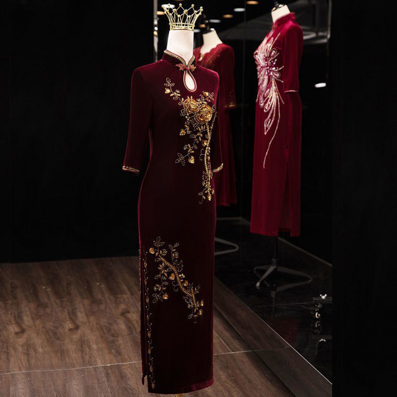 Mother’s Wedding Dress High-end Happy Mother-in-law Young Dress Noble Spring and Autumn Cheongsam Long Retro Middle-aged Slim-fit