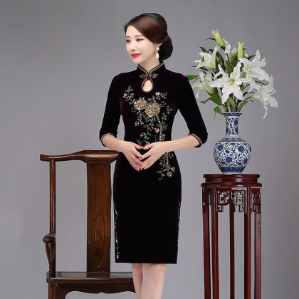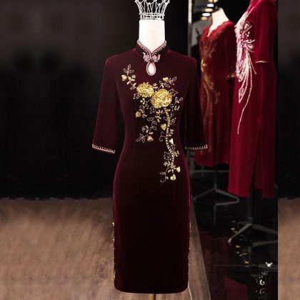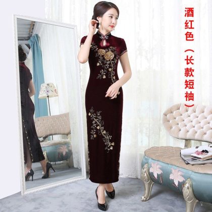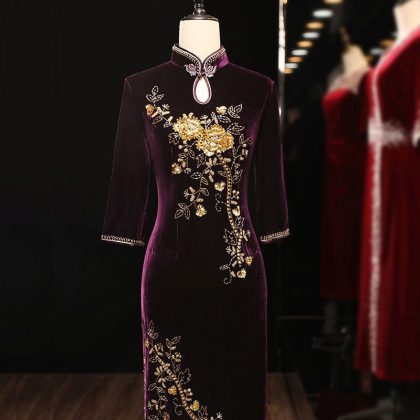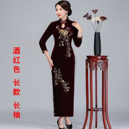 Mother’s Wedding Dress High-end Happy Mother-in-law Young Dress Noble Spring and Autumn Cheongsam Long Retro Middle-aged Slim-fit
