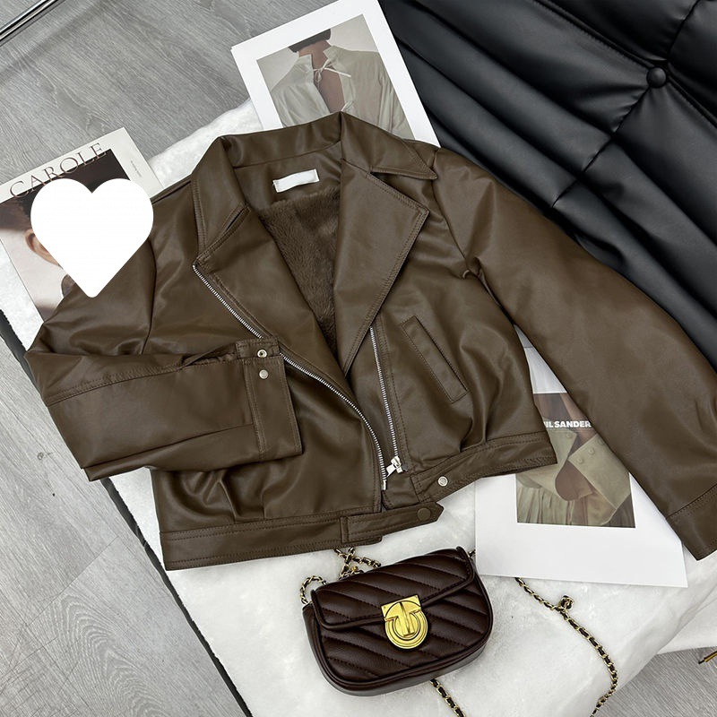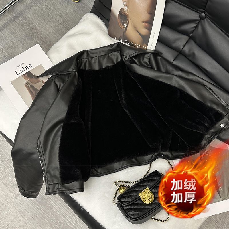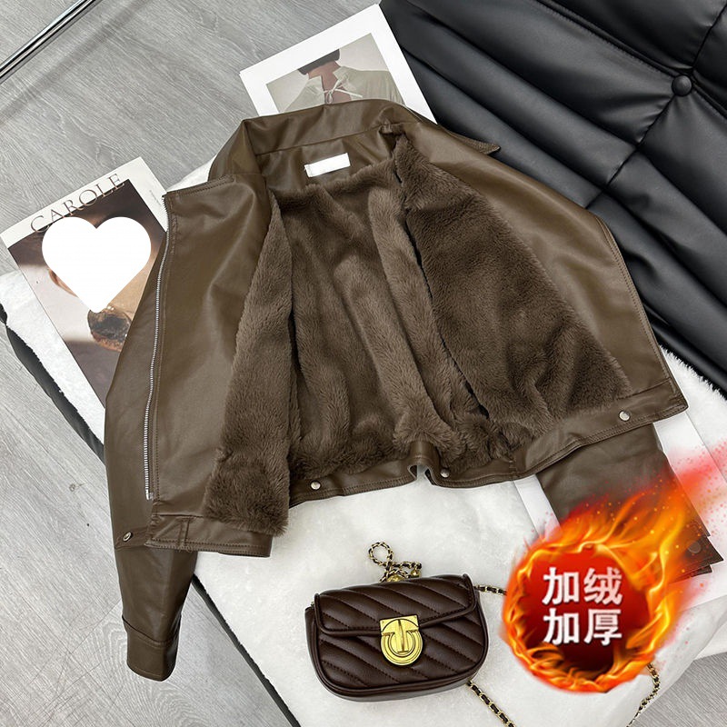 | nameOriginal | Motorcycle Coat Women's Leather Coat Autumn and Winter 2023 New Hong Kong Style Retro fleece-lined Thickened Small Leather Jacket Top |