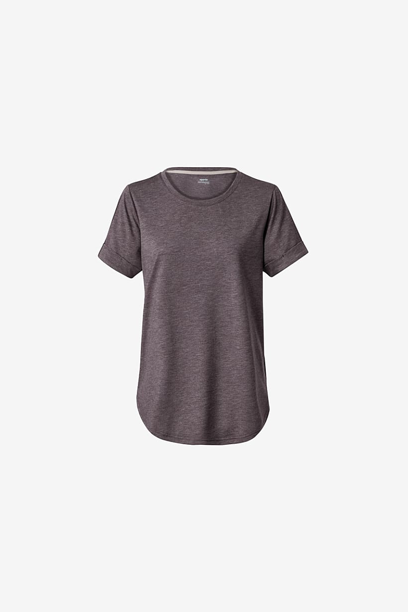 Sportswear Type : T-Shirt, Occasion : Sport, Care : Machine washable, Ideal For : Women, Fabrics : 14% Viscose, 86% Polyester, Pattern & Print : Heather, Type of Sport : Outdoors, Disclaimer : Product color may slightly vary due to photographic lighting sources or your monitor settings., Types of Closures : Pullover, Types of Hem : Straight hem, Color Family : Purple,