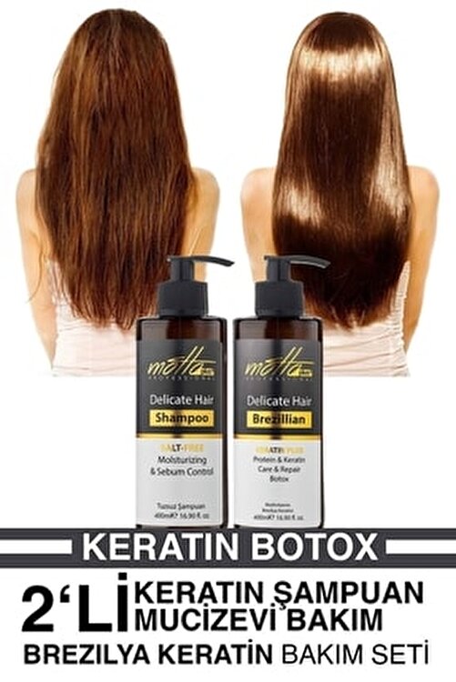 Motto Plus 2 in 1 Brazilian Hair Bumper Shampoo+Keratin 400Ml Care Kit Set Content: Motto Plus Brazilian Hair Hair Keratin Care 400 ml Motto Plus Salt-Free & Oil Balancing Shampoo 400 ml Motto Plus Brazilian Hair Hair Keratin Care 400 ml Product Features: Keratin care root thanks to its developed formula for overworn hair helps to repair it from end to end. It gives shine to the hair and helps the hair stay straight for up to 3 – 6 months. Usage: Wash your hair 2 times with MotToPlus salt-free shampoo. Then, with the help of a towel, take the wetness of your hair and leave it moist. Apply MotToPlus 1 cm above the bottom of your hair to the tips of the hair. After application, with a frequent comb, thoroughly feed the product to the hair. Close your hair with a bonnet and leave it on the hair for 30 – 40 minutes. During the standby, give heat to your hair with a blower with a break of 5 minutes and let your hair rest. At the end of the allotted time, dry your hair thoroughly with the help of a dryer and then straighten your hair with a 230 degree straightener. To enhance the straightening effect, it is recommended not to rinse your hair for 24 – 48 hours. Then you can wash it off with MotToPlus salt-free shampoo and say hello to brand new shiny, strong and smooth hair. After application it is recommended to constantly use MotToPlus salt-free shampoo. Warning: Keep out of reach of children. Store at room temperature away from direct sunlight. It is not recommended to use pregnant women. Motto Plus Salt-Free Shampoo 400 ml Product Features: Salt-Free Shampoo provides gentle cleansing of treated and damaged hair. It helps to preserve the color of dyed hair for longer periods. The keratin treatment helps the keratin to last longer by keeping the hair structure strong. It helps to trap moisture in the hair. Thus, problems such as drying out of the hair are not observed. Warning: Keep out of reach of children. Store at room temperature away from direct sunlight.