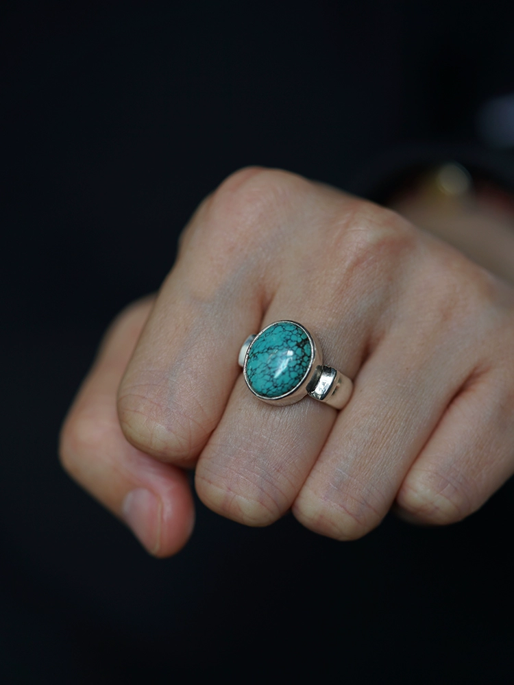 | nameOriginal | Mountain and sea original mine turquoise ring|VISHI Weishi 925 handmade sterling silver natural turquoise ring men and women certificate |