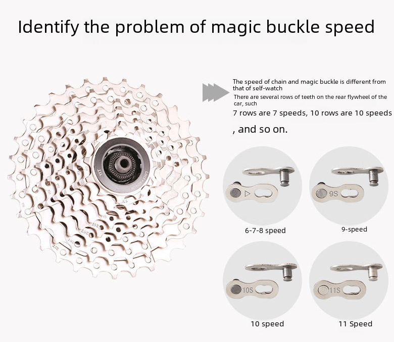 | nameOriginal | Mountain road bicycle chain magic buckle 8S/9/10/24/27/30 speed single speed chain Quick release buckle |