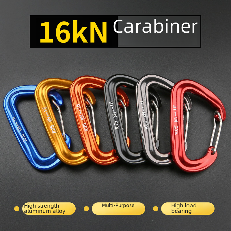 | nameOriginal | Mountaineering buckle aviation aluminum D-type quick-hanging stainless steel spring hook multi-function hammock hook 16KN outdoor hanging buckle equipment |