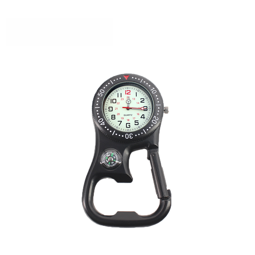 | nameOriginal | Mountaineering buckle hanging watch watch hanging buckle compass watch bottle opener luminous spiral double time zone backpack ornaments outdoor rock climbing |
