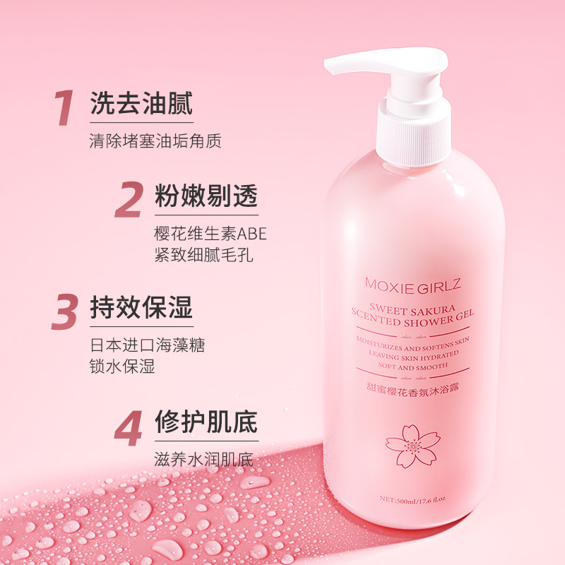 Mousse Girl Sweet Cherry Blossom Fragrance Shower Gel Lasting Fragrance White Super Fragrance Family Suit to Chicken Skin Student Female