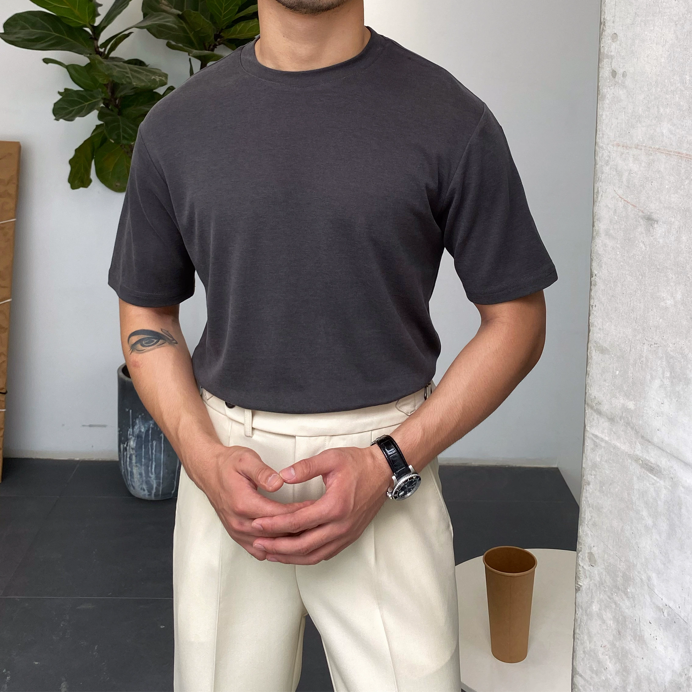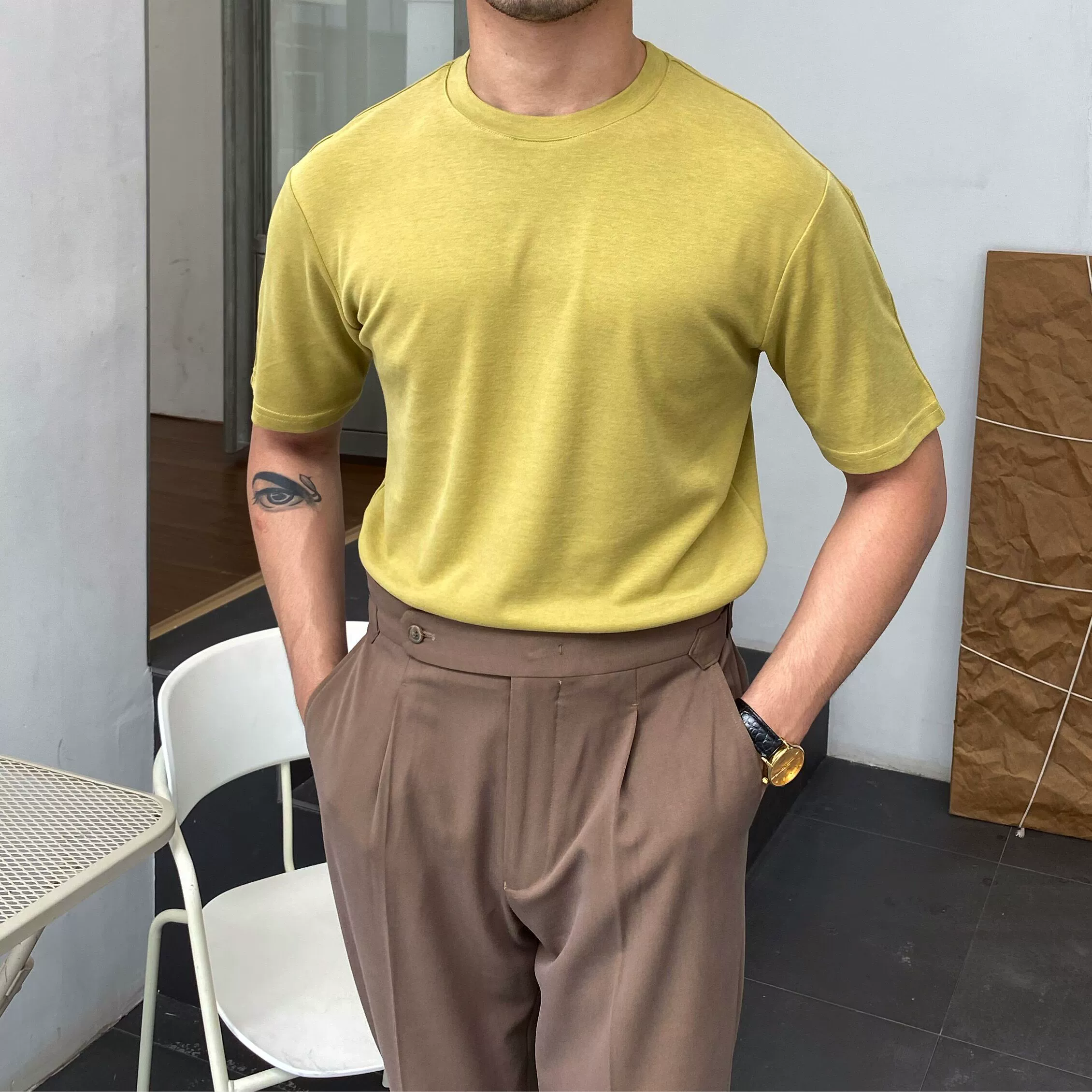 | nameOriginal | Mr. Lu San micro wide draped silky casual short sleeves |