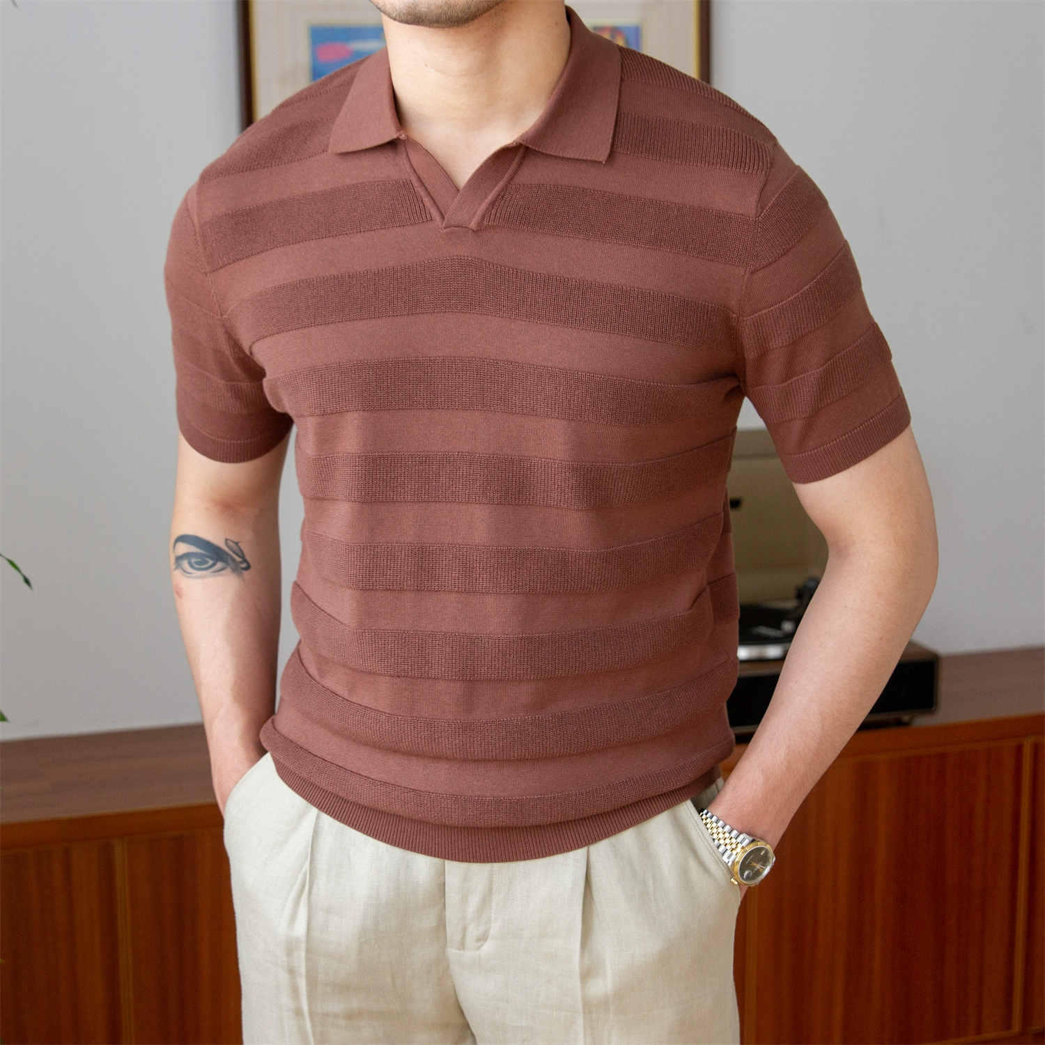 Mr. Lu San Summer 14-needle high-density cotton breathable short-sleeved scissor collar slim POLO shirt fashionable T-shirt for men