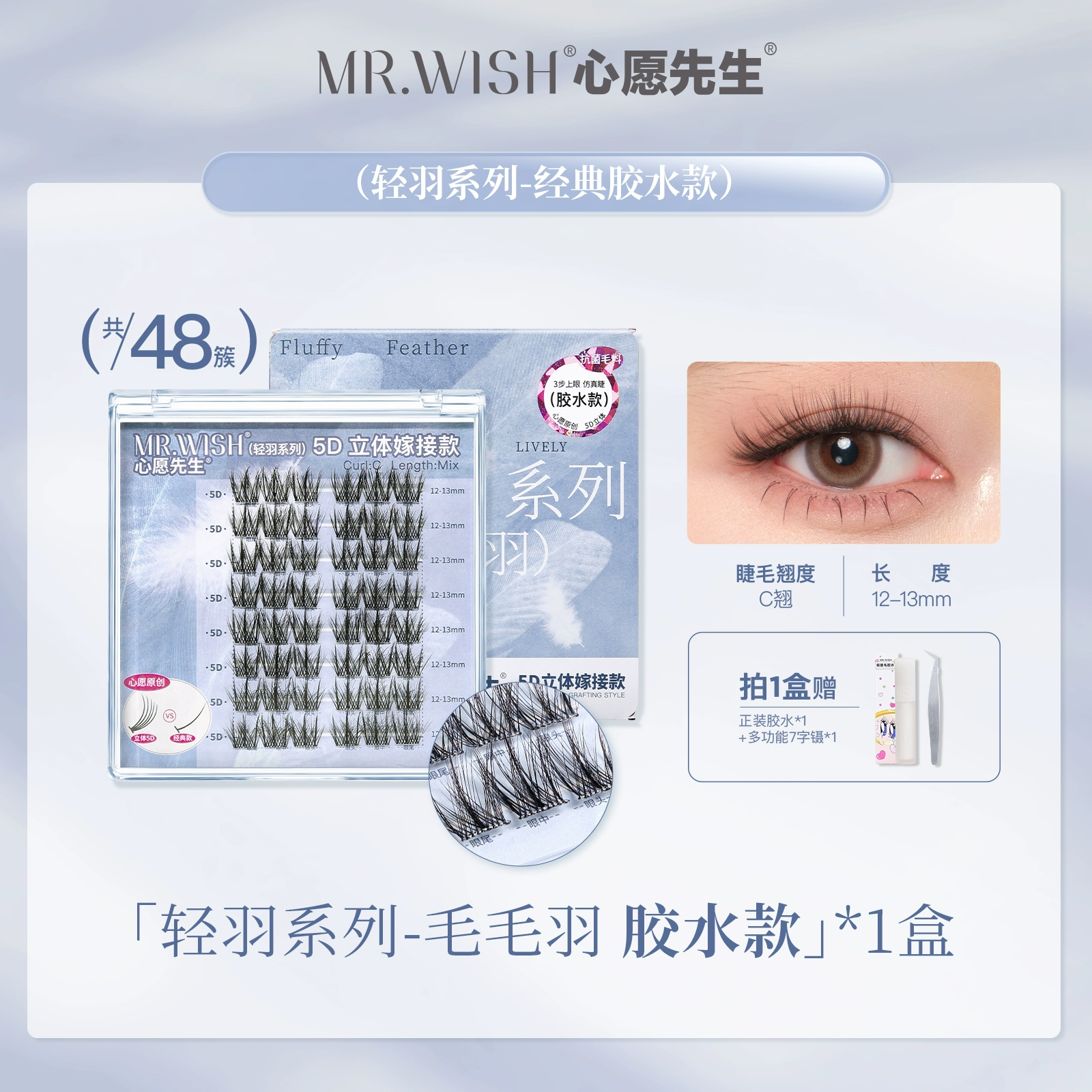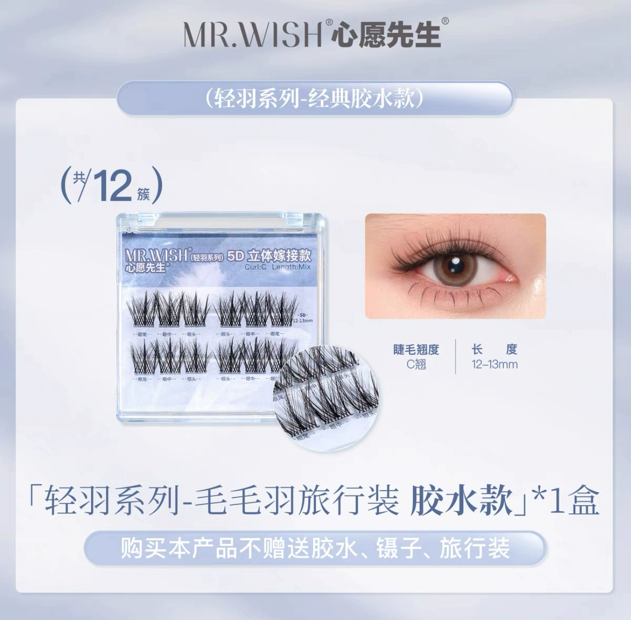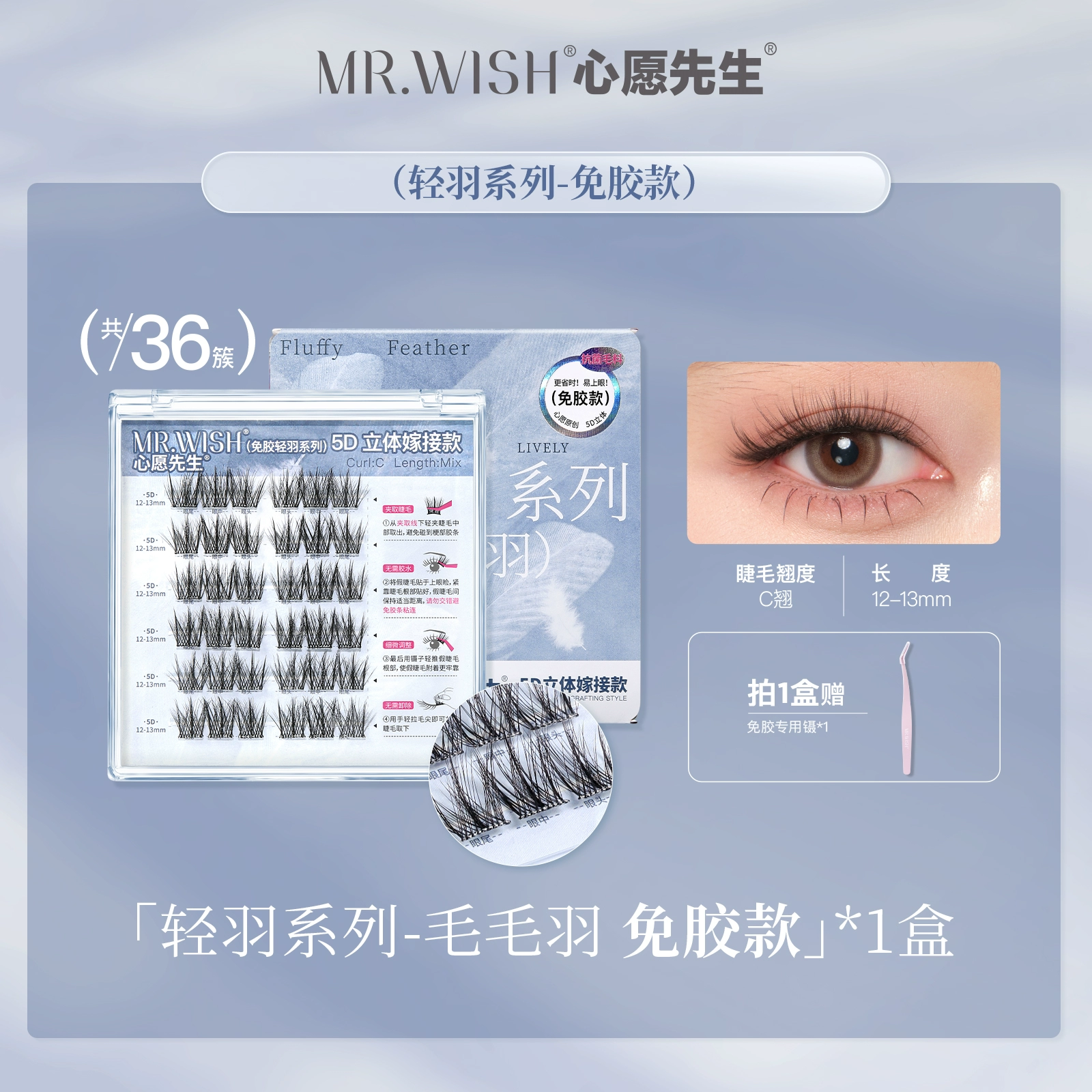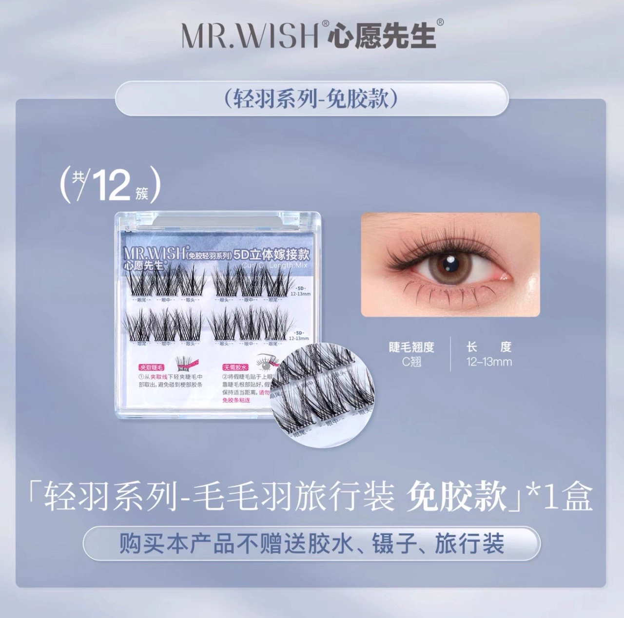 | nameOriginal | Mr. Wish 5D glue-free false eyelashes three-dimensional light feather series original self-adhesive hairy lazy grafted eyelashes |