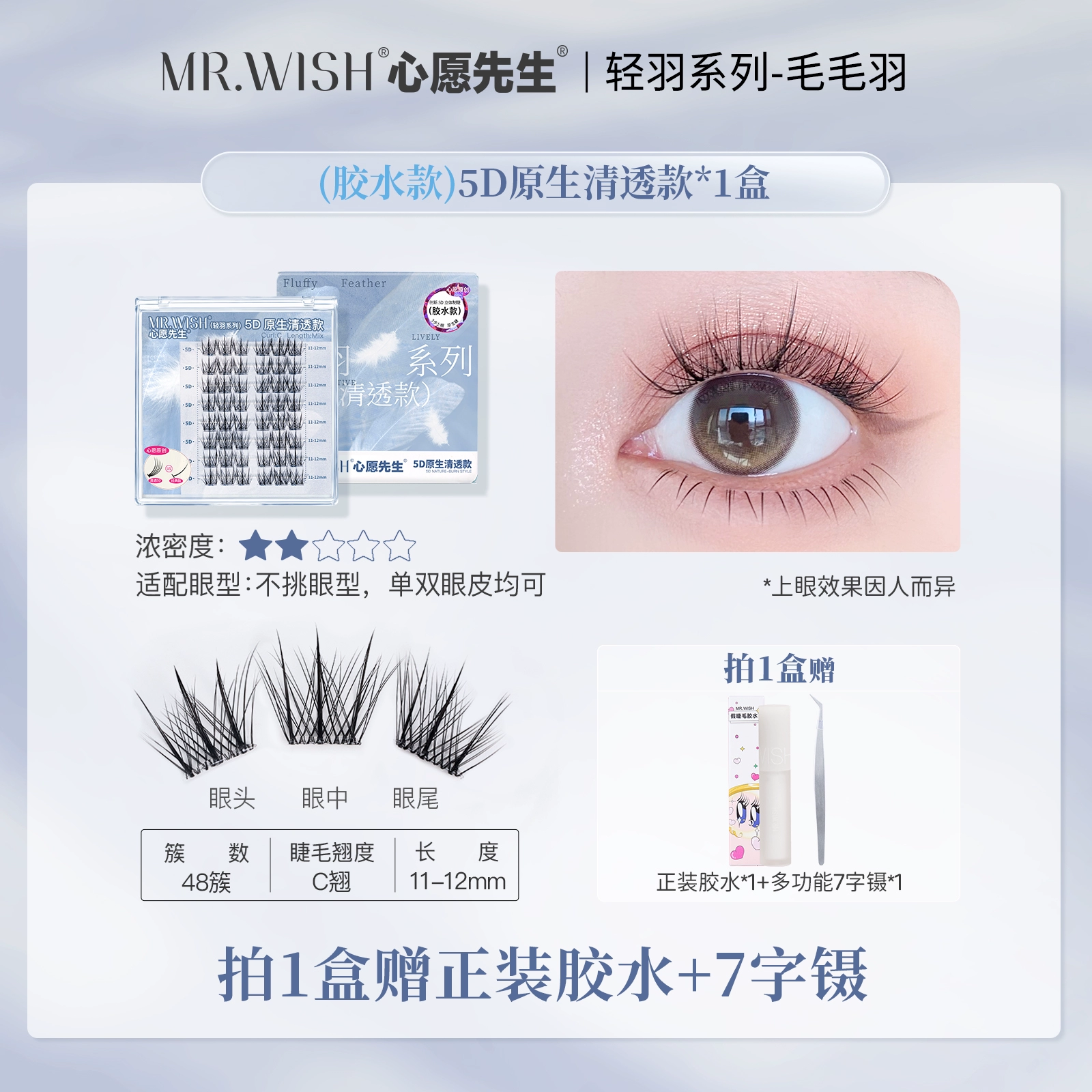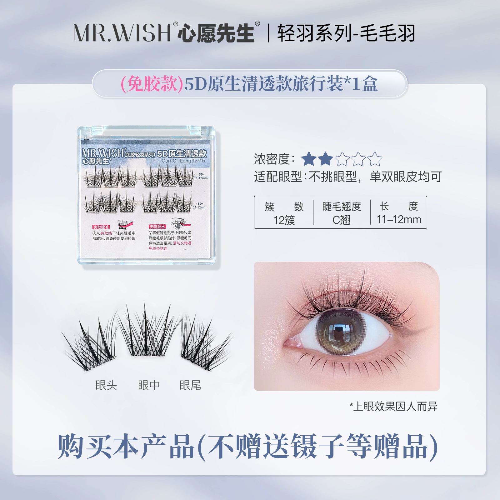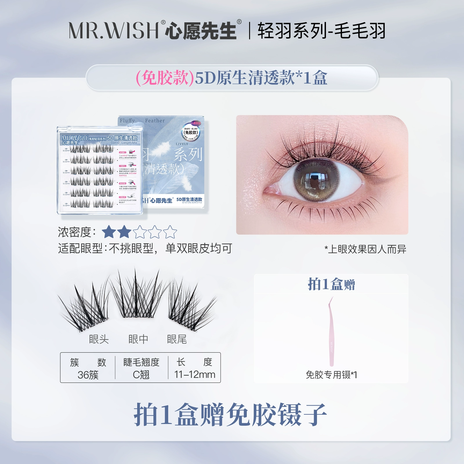 | nameOriginal | Mr. Wish 5D three-dimensional light feather series glue-free self-adhesive false eyelashes with clear and transparent lazy grafted eyelashes |