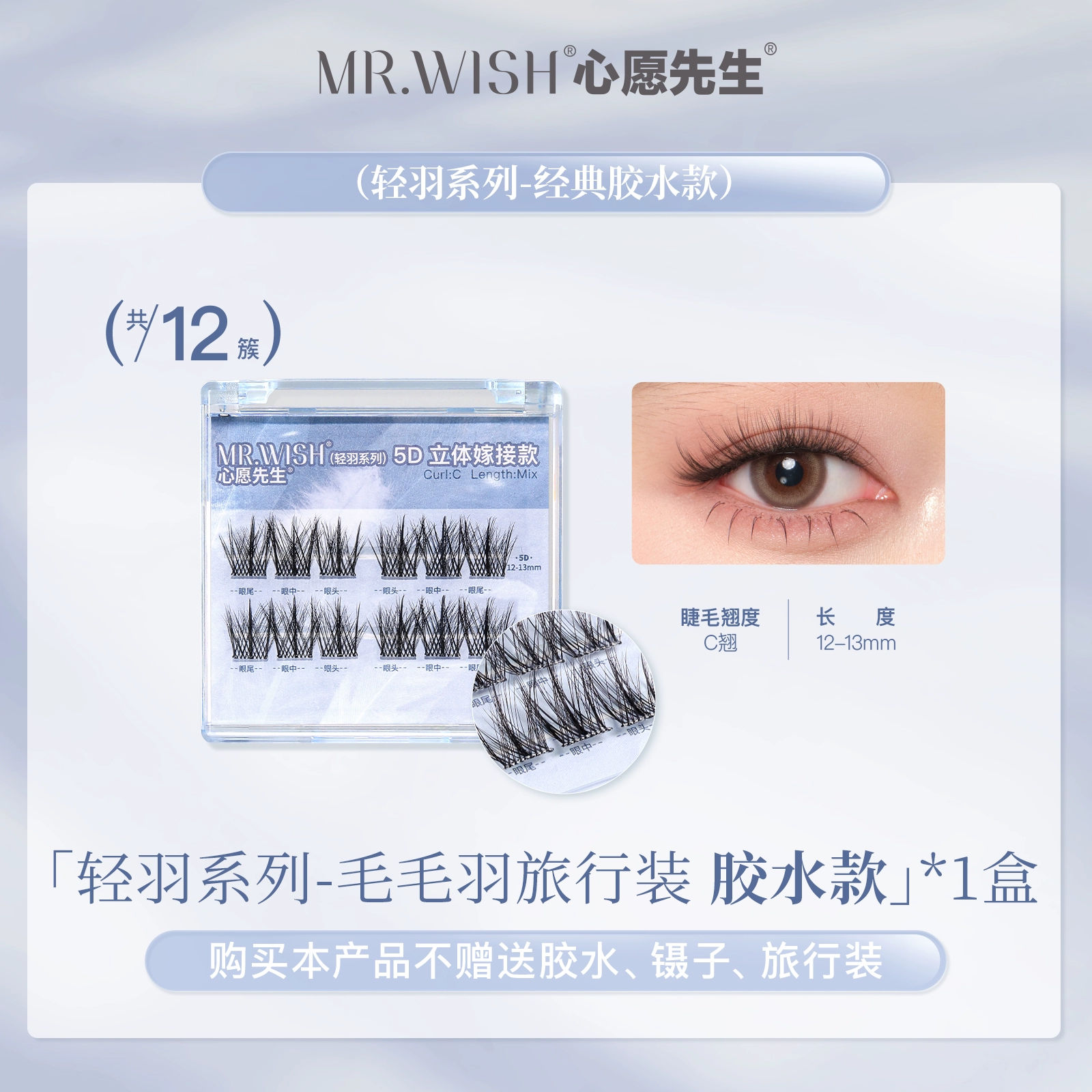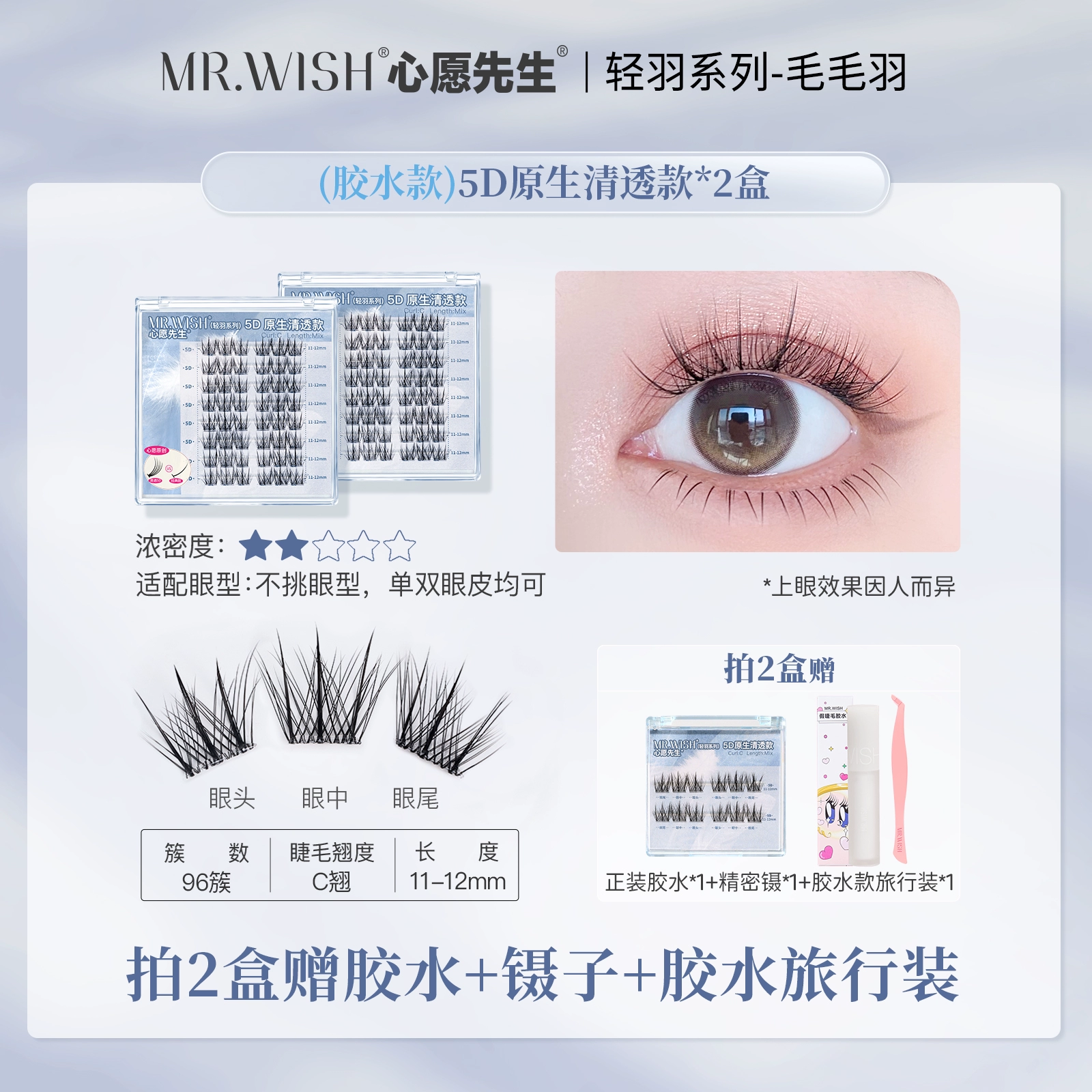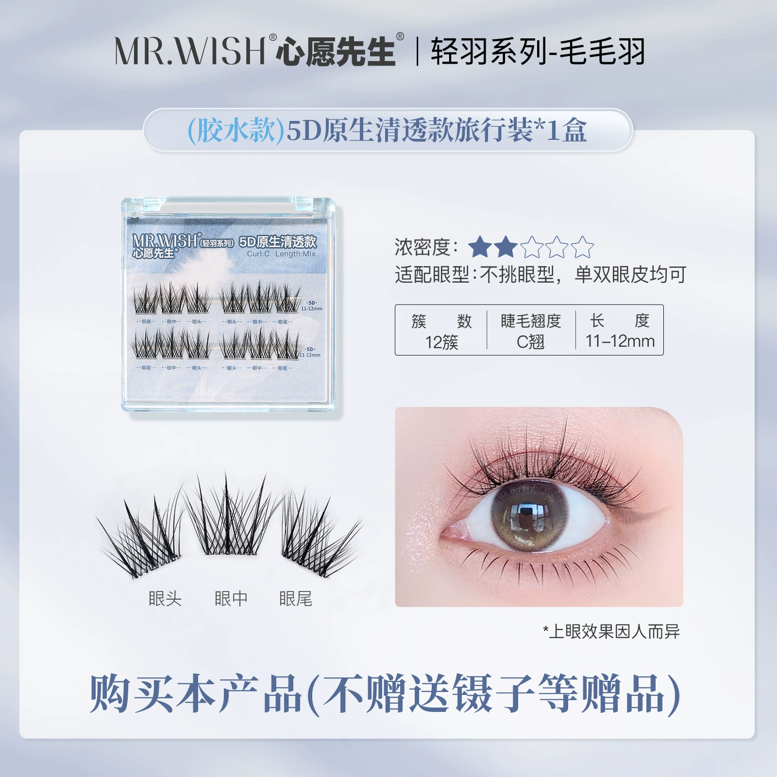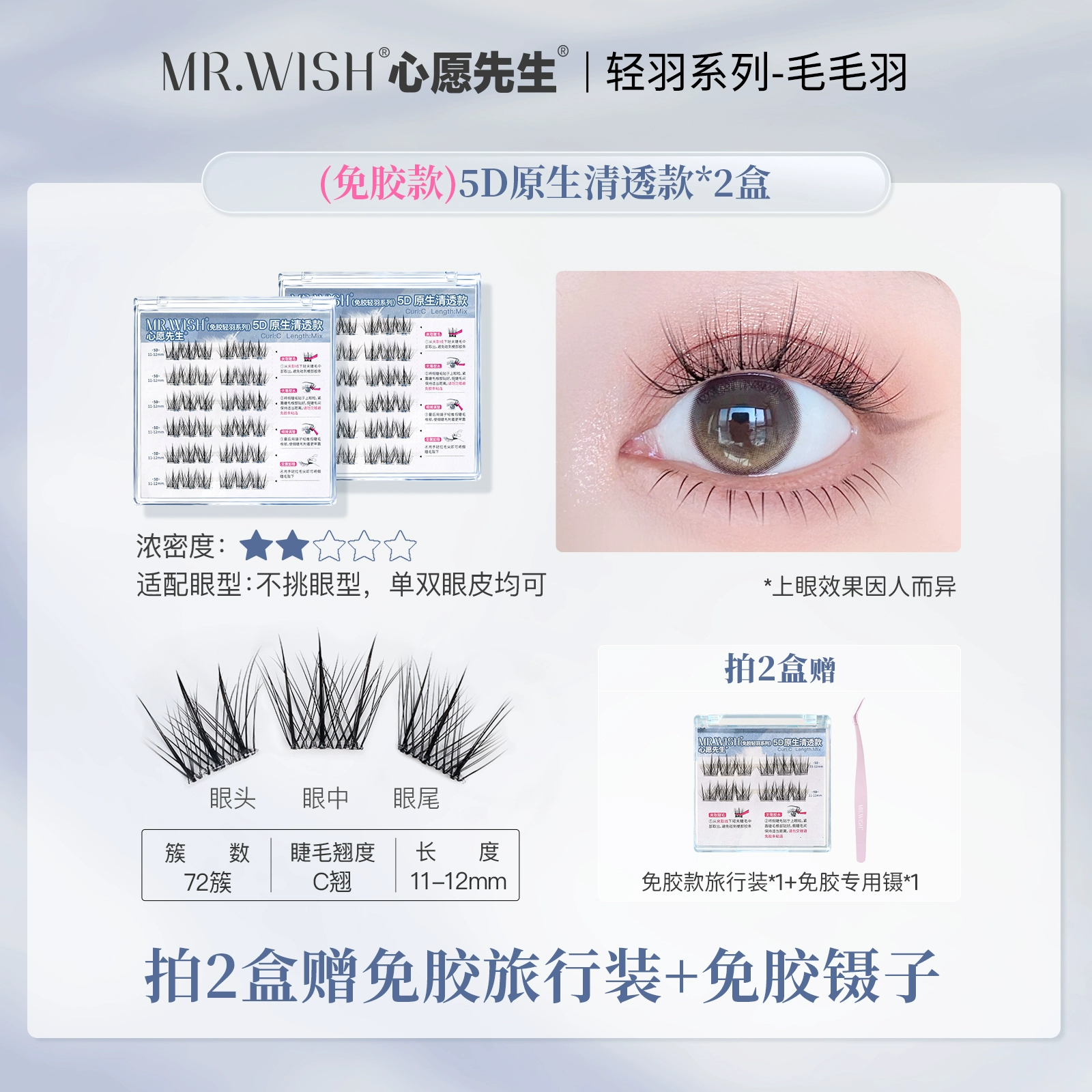 | nameOriginal | Mr. Wish 5D three-dimensional light feather series glue-free self-adhesive false eyelashes with clear and transparent lazy grafted eyelashes |