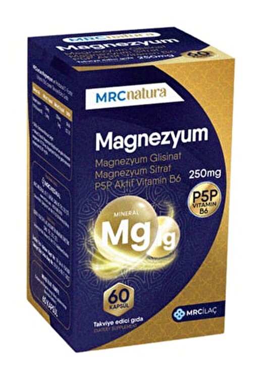 The selling price of the product you have reviewed is determined by the seller.MRC NATURA Magnesium P5p Vitamin B6 60 Capsules | Magnesium Bisglycinate & Citrate. MRC NATURA Magnesium P5P Vitamin B6 60 Capsules | Magnesium Bisglycinate & Citrate Magnesium Supplementing Food Product Feature • Provides 250 mg of elemental magnesium daily. • Magnesium Bisglycinate and Magnesium Citrate among the highest bioavailability and absorption of magnesium salts. It is presented with P5P (pridoxal 5 phosphate), which is a metabolically active form and an auxiliary factor in many enzymatic activities• Magnesium mineral has important roles in terms of structure and function of the human body. More than 60% of magnesium is found in bones and about 27% in muscles. An average of 20-28 grams of magnesium in the human body is estimated to be involved in about 300 enzymes. • In clinical trials, combined use of magnesium and Vitamin B6 has been shown to be more effective than the use of magnesium alone. • MRCNATURA magnesium P5P, • These capsules are purely herbal and suitable for vegetarian and vegan use. Product Usage • Taken with a quantity of water as 1 capsule 2 times a day. • This fortifying food is suitable for use aged 11 years and older. Product Contents Component Name Quantity/1 Capsule Quantity/2 Capsules %BRD* Magnesium** 125 mg 250mg 66.66 P5P (Vitamin B6) 2.5 mg 5 mg 357.1 Contents: Magnesium 125mg, P5P (Vitamin B6) 2.5mg This product can be ordered no more than 15 pcs. Orders over 15 pcs Cancel Trendyol reserves. No more than 10 pieces of stock are offered for sale at the campaign price. Trendyol reserves the right to cancel orders over 10 pieces. More than 5 stocks are offered to be sold at the campaign price.This product is not included in the discount campaign.One product can be sold by multiple sellers. Sellers of products offered for sale by multiple vendors are sorted according to the price they set for the product, seller ratings, delivery status, promotions on the products, whether the cargo is free and whether the products can be delivered with, stock and categories of products.