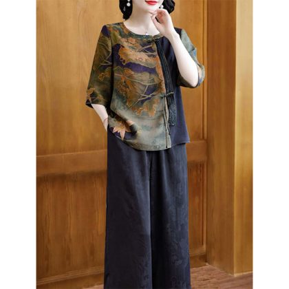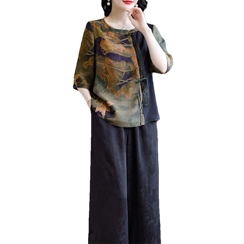 | nameOriginal | Mrs. Kuo Mama Summer Xiangyun Yarn Silk suit Women's 2024 Summer New Mulberry Silk plus size Loose Two-piece Set |