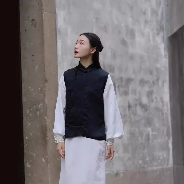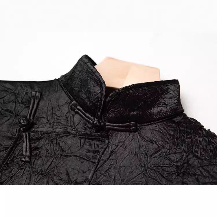 | nameOriginal | MS 2023 Early Autumn New Black Pleated Satin Chinese Style Slant Placket Buckle Vest |