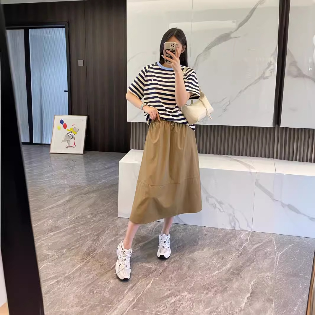 Ms. Bao Y’s fashionable age-reducing tooling stitching vertical cut A- shaped skirt 06b1502