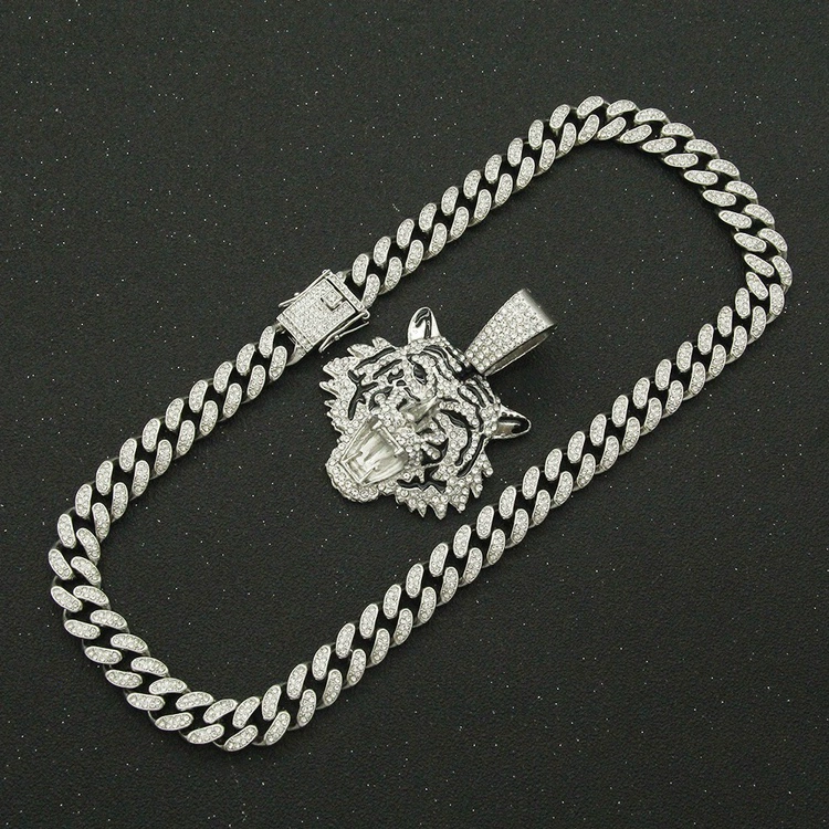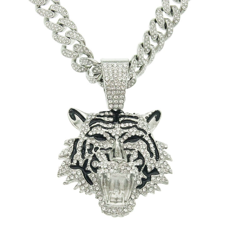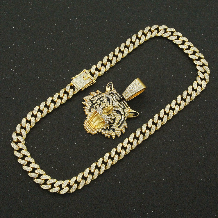 MS European and American full diamond painting oil tiger head thickening pendant m3 male Cuban necklace hip hop rap rap