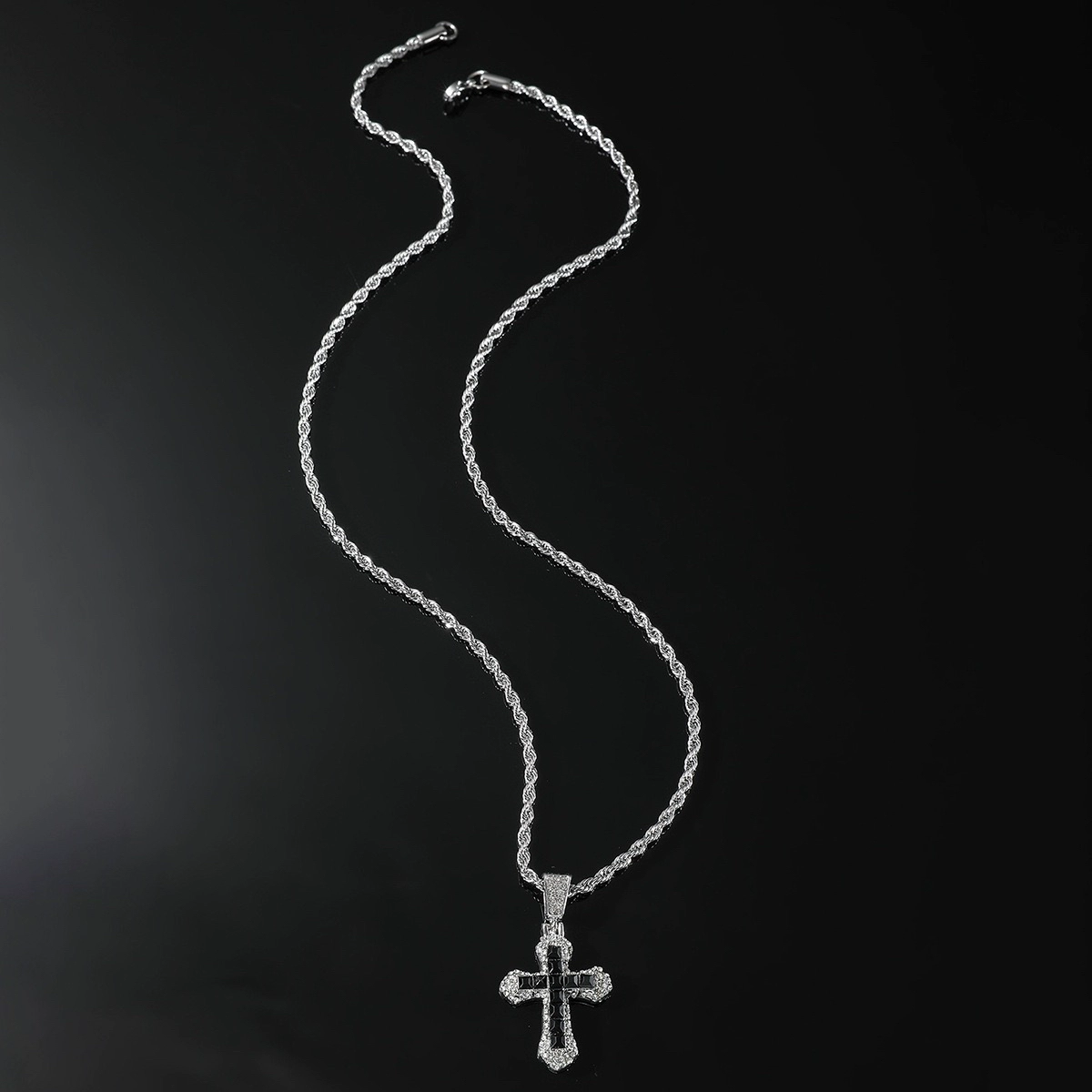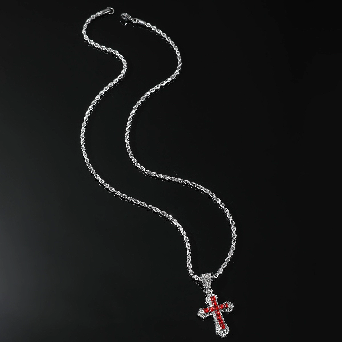 | nameOriginal | MS European and American hip-hop red black zircon cross pendant men's titanium steel necklace ins heavy industry full of diamonds cold style |